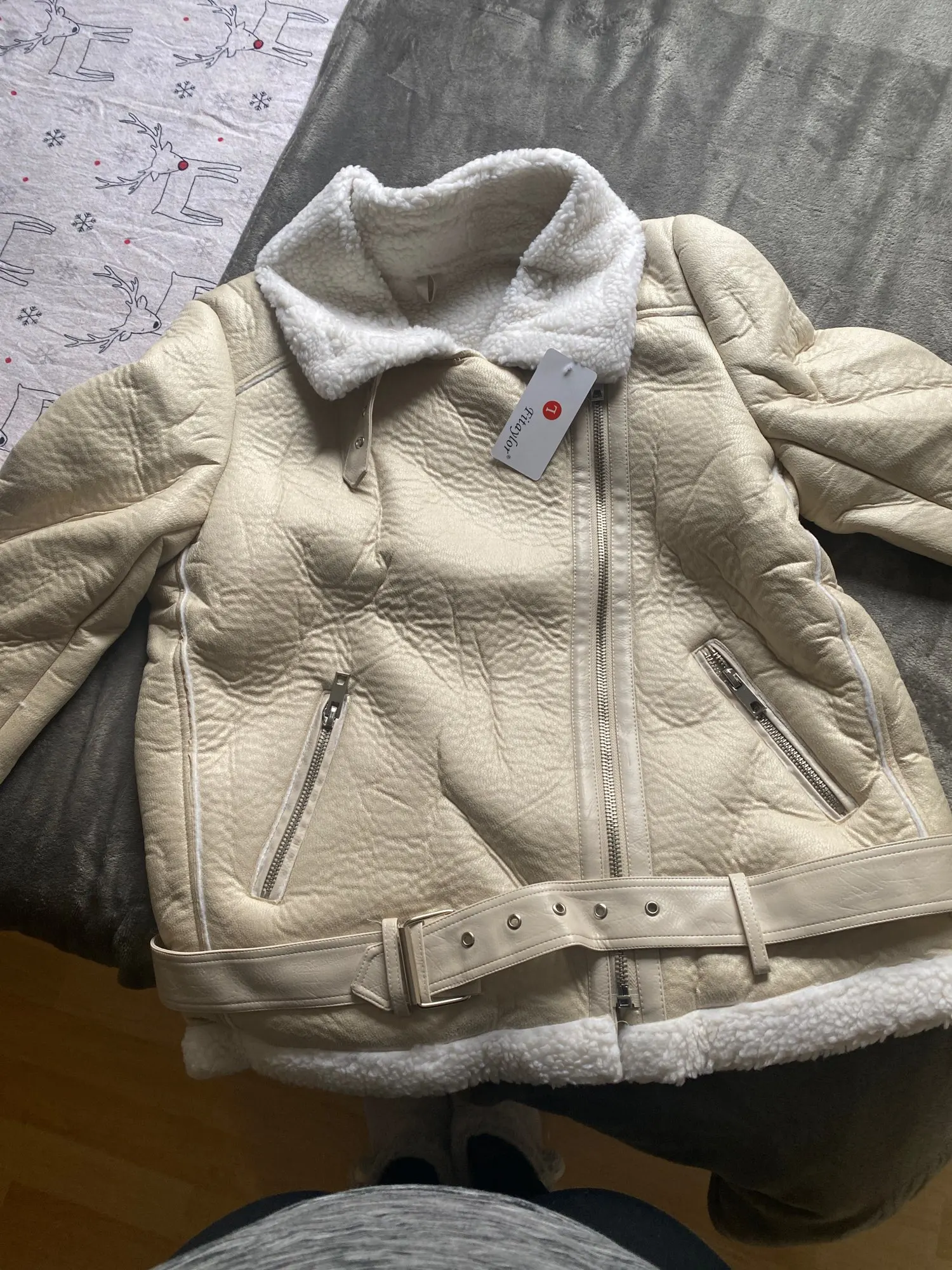 дубленка отличная, за эту цену 2600₽ просто супер! Качество хорошее, в машине ездить будет самое то! Очень приятный бежевый цвет. Смотрится не дешевкой с базара. Очень быстрая доставка. Я взяла размер S, чтобы можно было под низ одевать свитер или толстовку.
