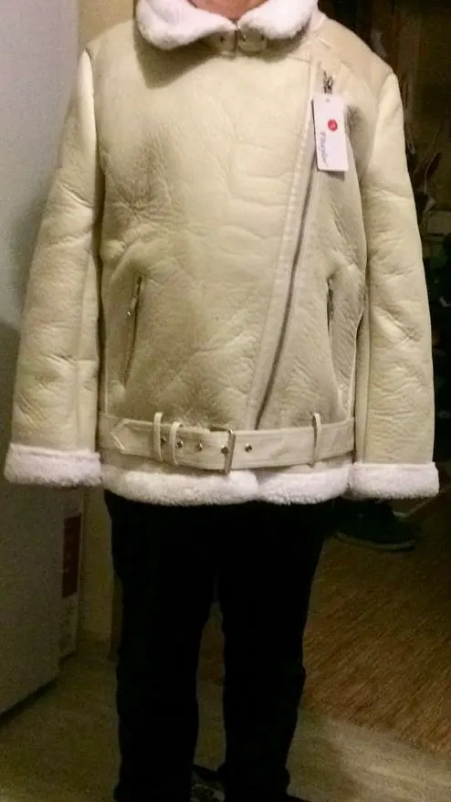 Дублёнка просто класс, качество и внешний вид мне очень нравятся. Не нужно ждать вау эффекта натуральной овчины за такую стоимость, но всё очень достойно, нет запаха, нет брака, фурнитура и пошив отличные. Основной цвет немного кремовый, но мех беленький и очень уютный. Продавец помог с размером, ношу с удовольствием.