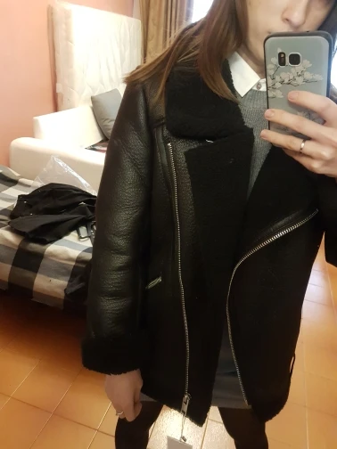 Дубленка вообще класс! За такие деньги точно надо брать. До МО доставка быстрая , недели за две дошло. На параметры ог-96 от-80 об-104 XL очень хорошо , смотрится оверсайз. Рост 163 чуть прикрывает попу. Теплая, думаю где-то до -5 можно походить)