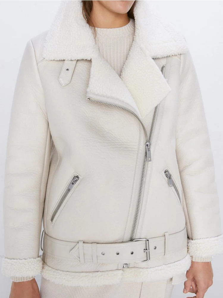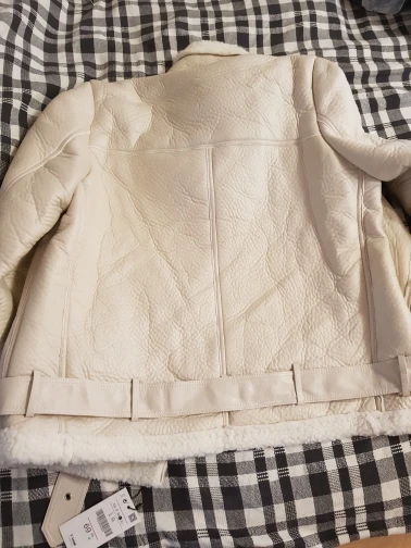 цена вопроса 2381р. Куртка не белая, скорее более молочная, немного желтоват цвет. Искусственный ворс сразу остаётся на вещах, так что водолазки не белого цвета под неё лучше не носить. качество фурнитуры тоже так себе.