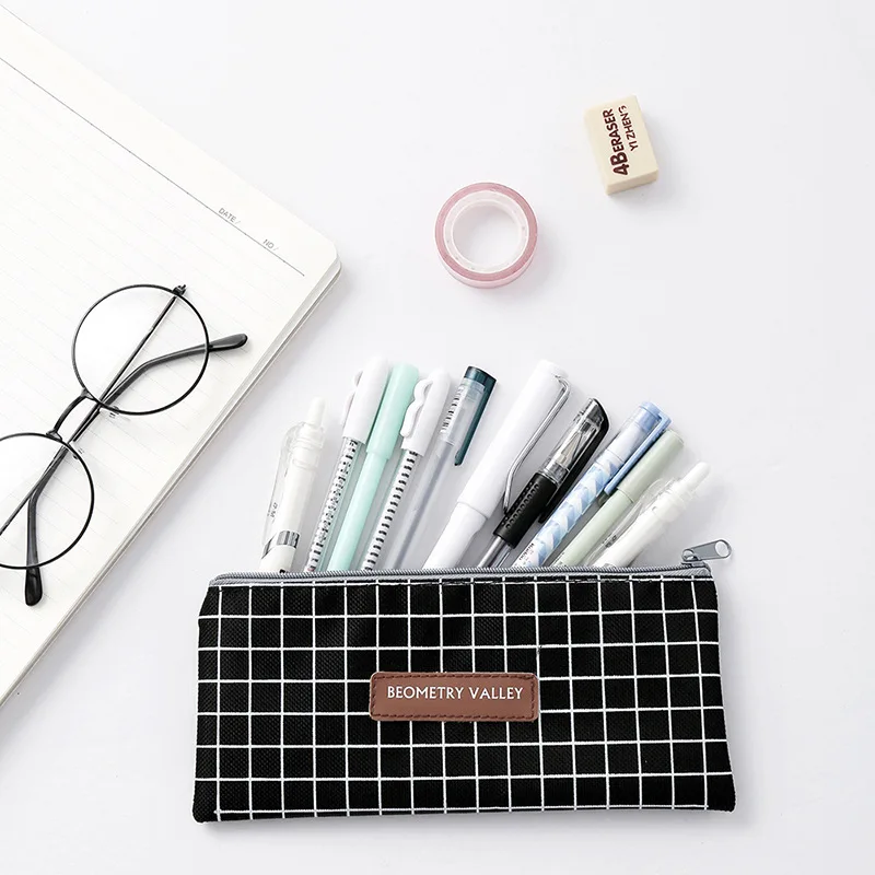Школьные принадлежности, чехол для ручки на молнии с рисунком клетк...