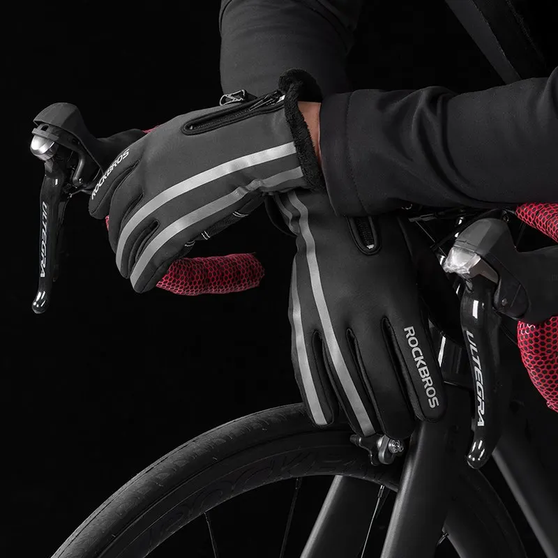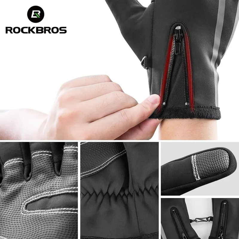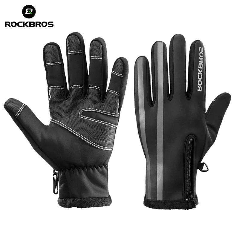 ROCKBROS Зимние перчатки для велоспорта с сенсорным экраном теплые непромокаемые перчатки с полным пальцем Mtb дорожный велосипед перчатки ветрозащитные термоперчатки для велосипеда