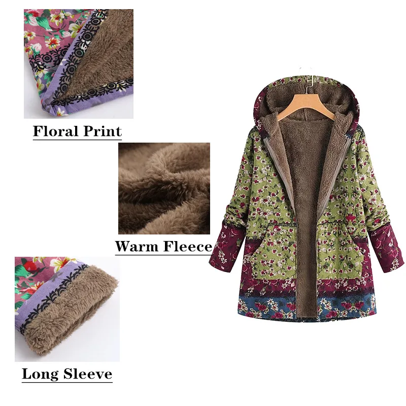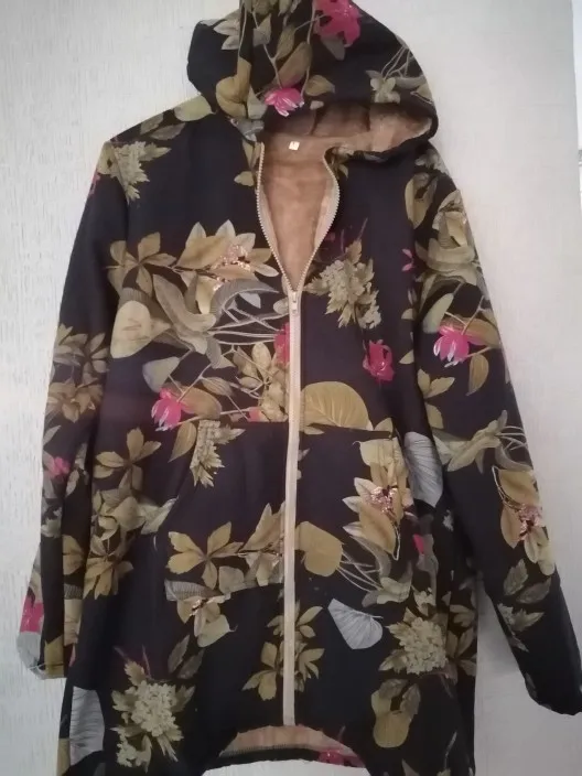 Куртка женская зимняя с капюшоном, с листьями и цветочным принтом, на молнии, флисовый уютный, S-5XL