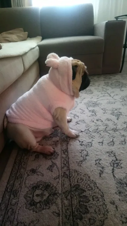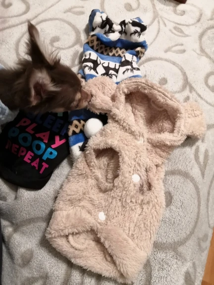 Милая собака убрано. Cieplutkie и приятный на ощупь. Легко поднимается. Застежка-молния.