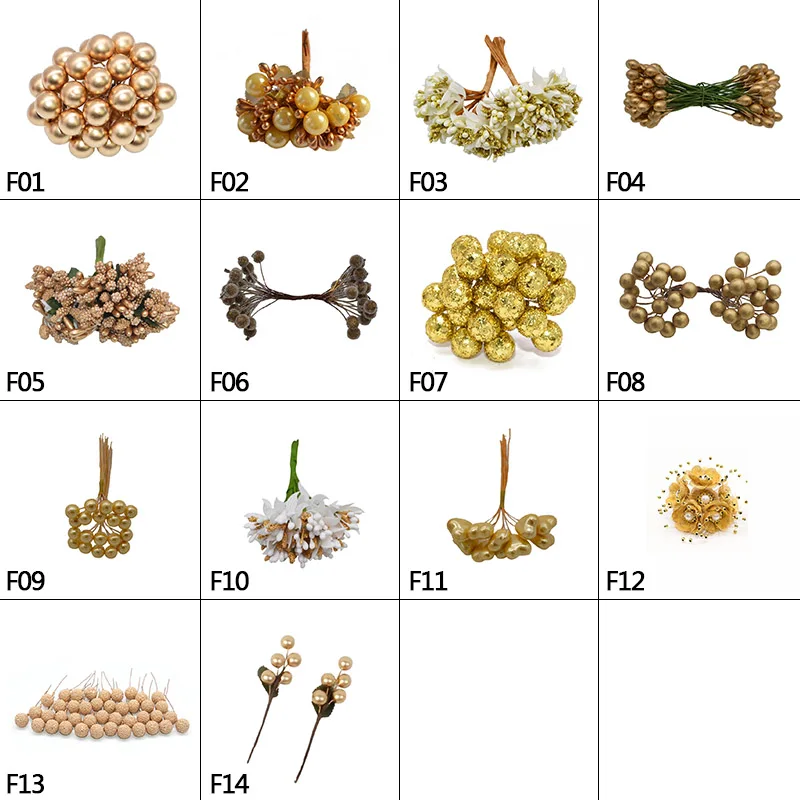 Золотой пластиковый мини искусственный цветок, тычинки, фрукты, вишневые ягоды, сделай сам, Рождественский свадебный венок, ремесло, искусственный цветок, украшение для дома