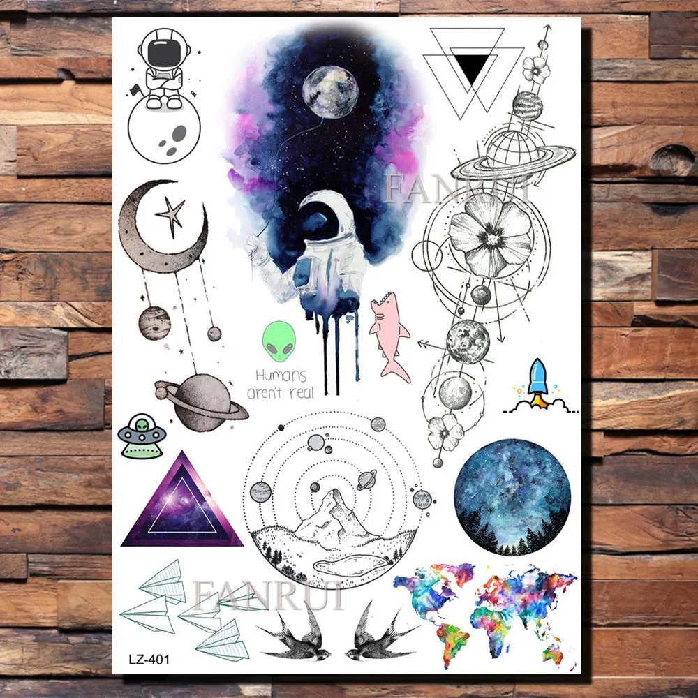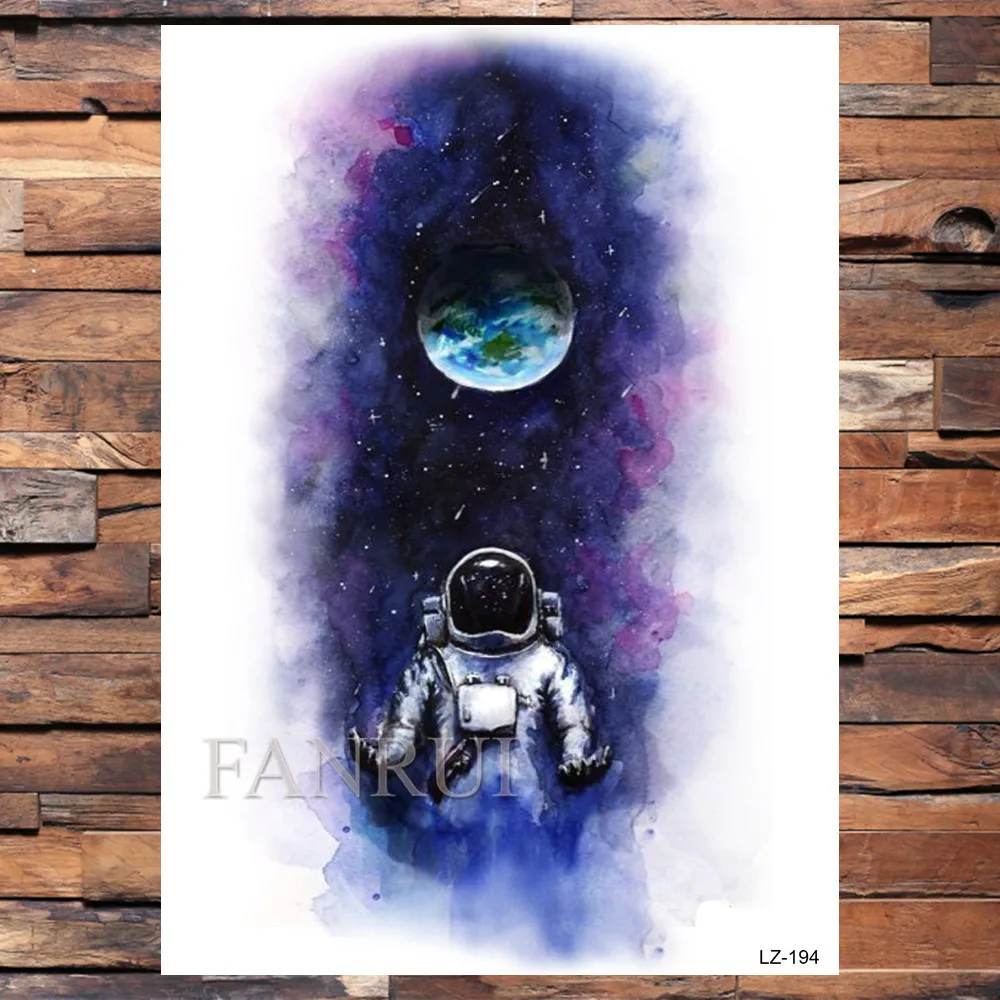 Акварель синяя Галактика космический человек Временные татуировки для женщин земля планеты цепи татуировки тело руки искусство поддельные Черепа татуировки наклейки