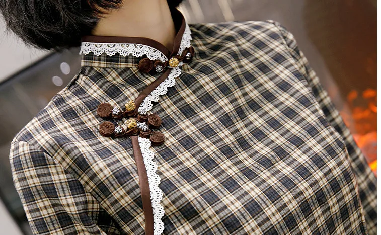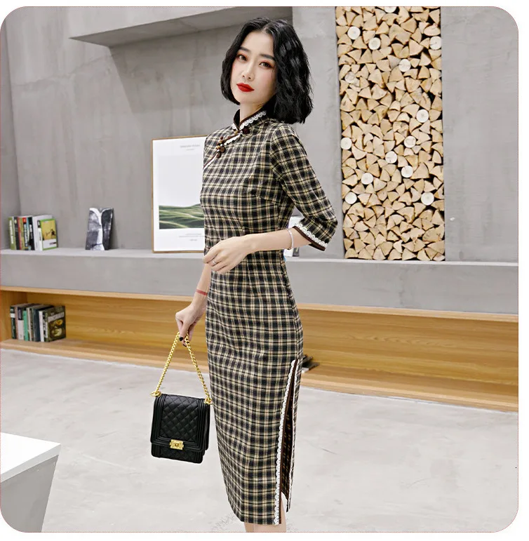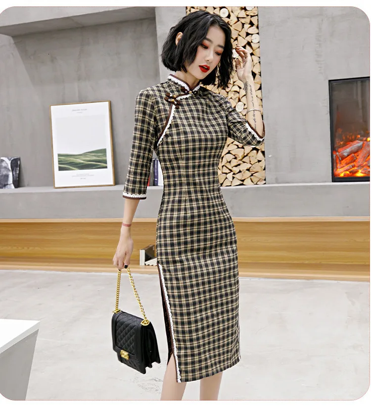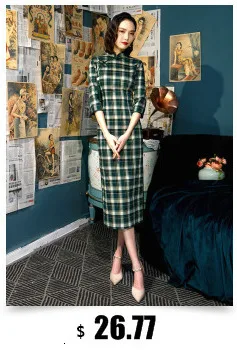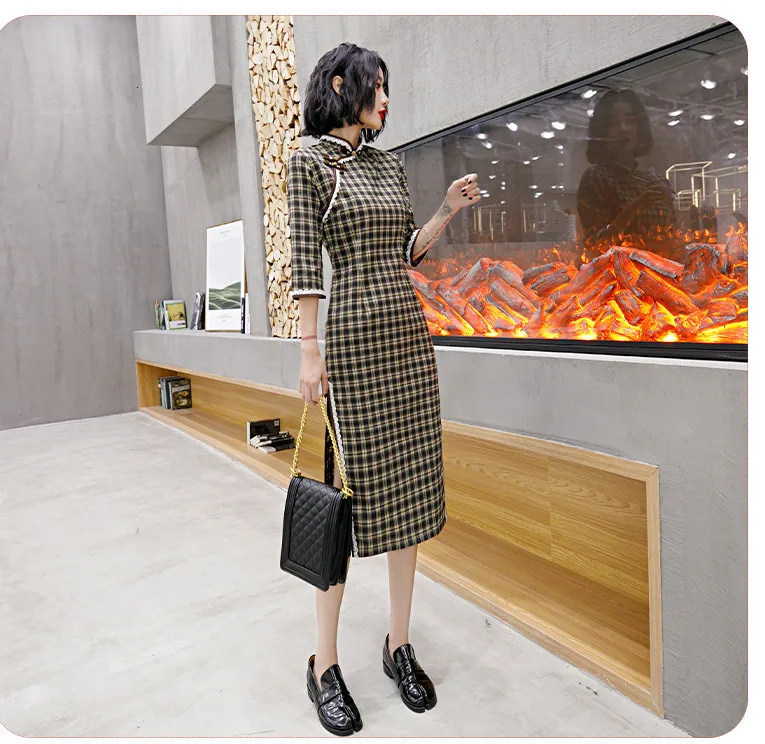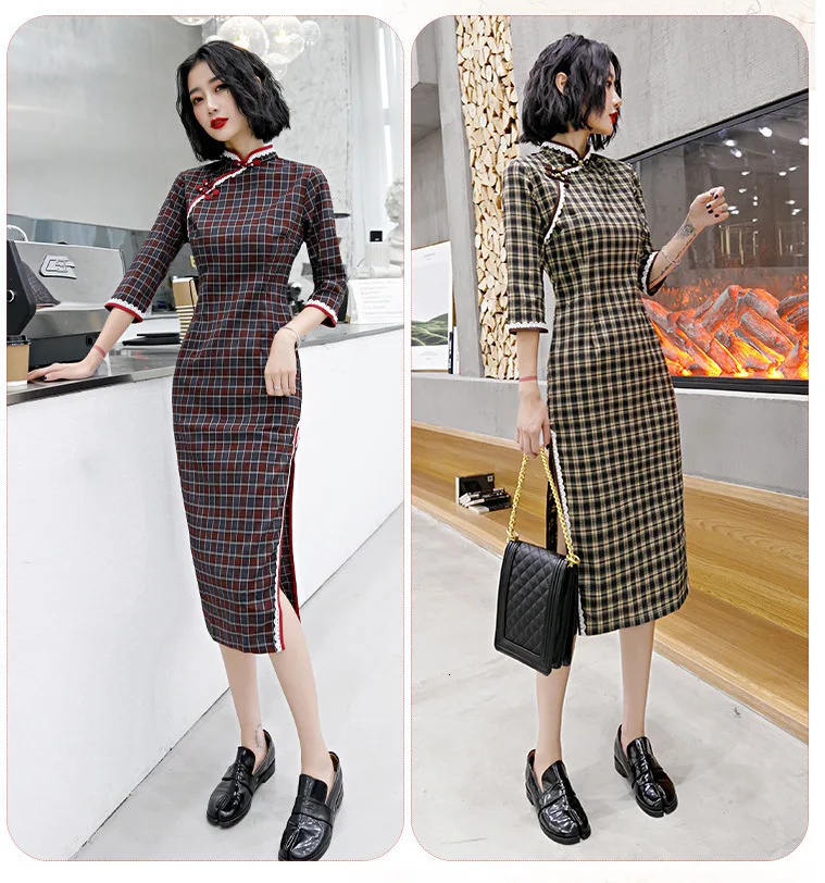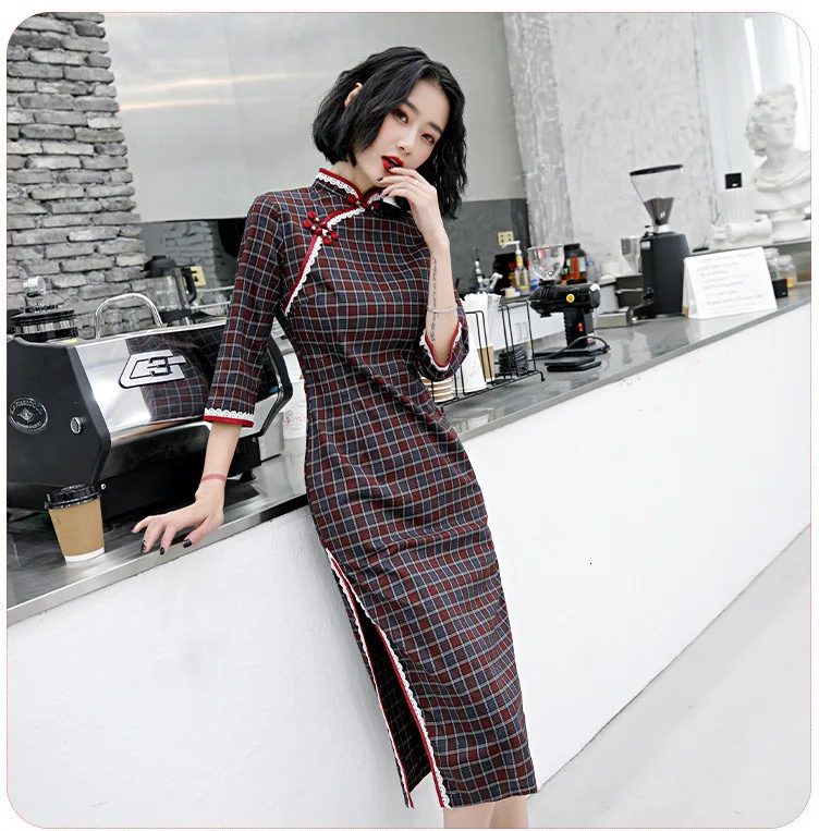 SHENG COCO современное Хлопковое платье Чонсам Женская клетчатая одежда Drak красный осенний китайский