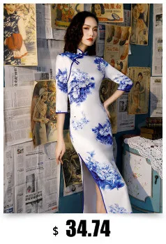 Женское длинное платье Ципао, традиционное китайское платье Ципао с...