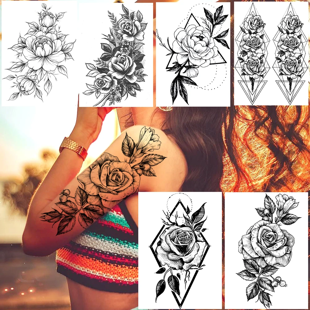 Красота Макияж Роза тату Цветок на руку Временная Цветочная кровь боди-арт хна Татуировка наклейка долговечная искусственная растение