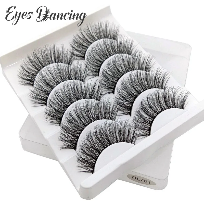 Глаза Танцы, партия из 5 пар 3D толстые длинные волосы из норки накладные ресницы натуральные ресницы тонкими макияж Красота поддельные ресницы для наращивания, инструменты