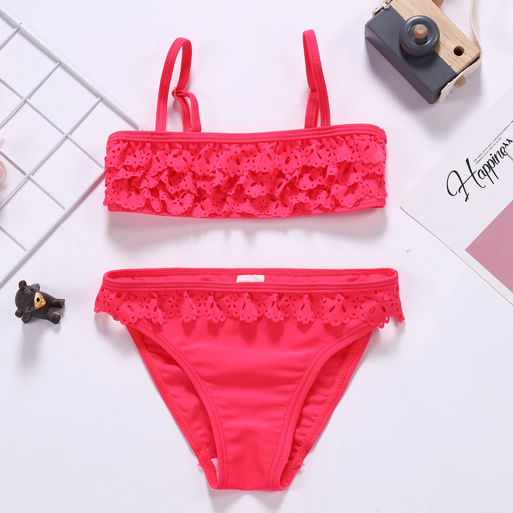 Новое поступление, Раздельный купальник для девочек, От 3 до 14 лет Купальник для девочек, Детский бикини с оборками, комплект из двух предметов, Детская Beachwear-ST9031mix