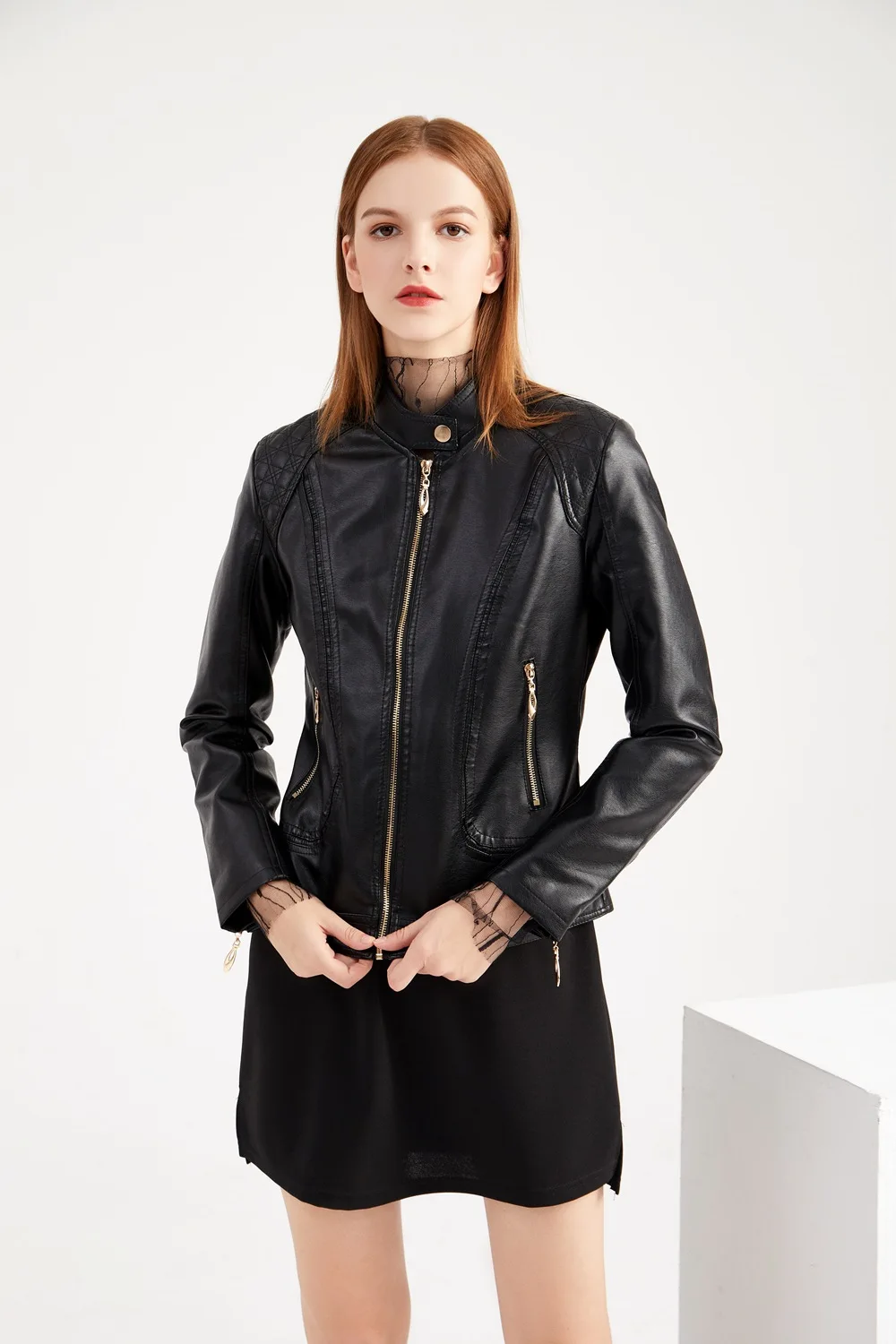 Женская кожаная куртка на молнии, красная байкерская куртка из искусственной кожи, с воротником-стойкой, большого размера, весна-осень, 2021