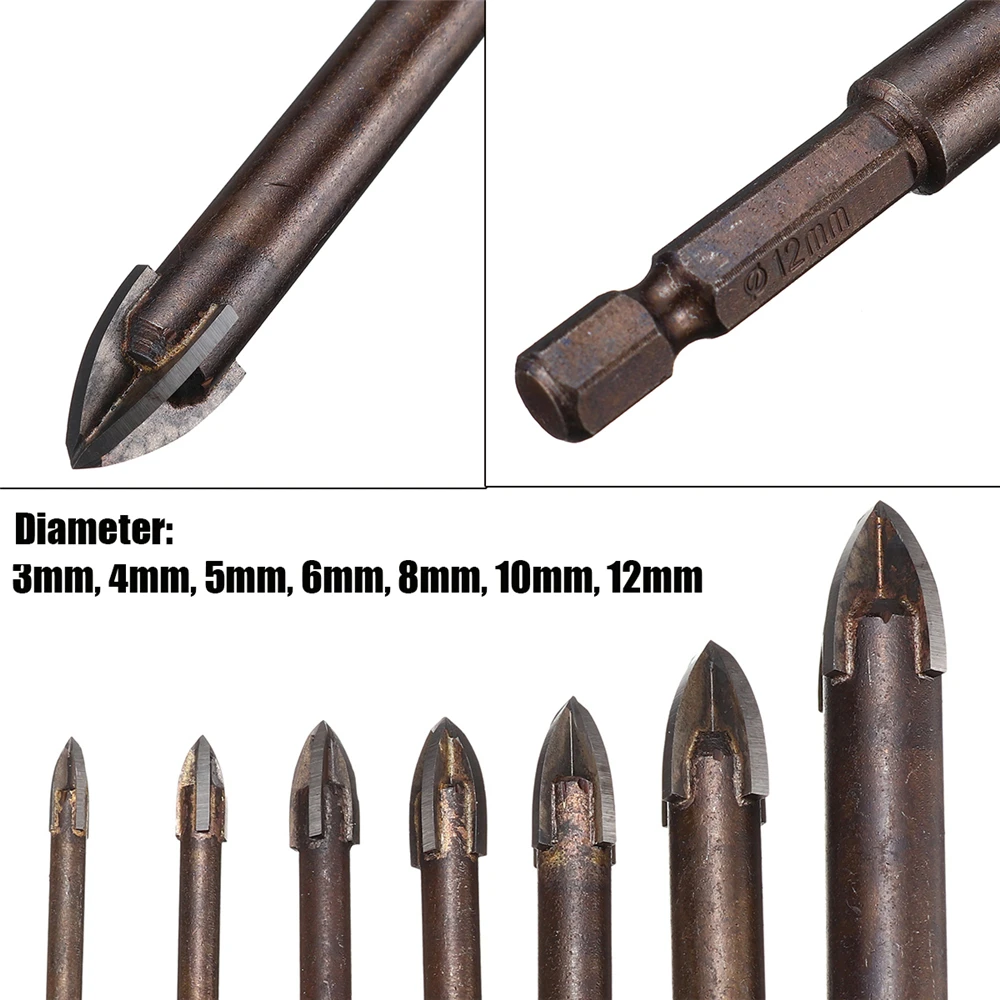 Набор сверл из карбида вольфрама и стекла, с 4 режущими кромками