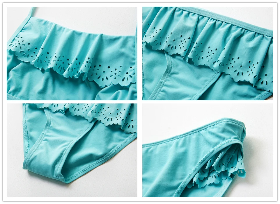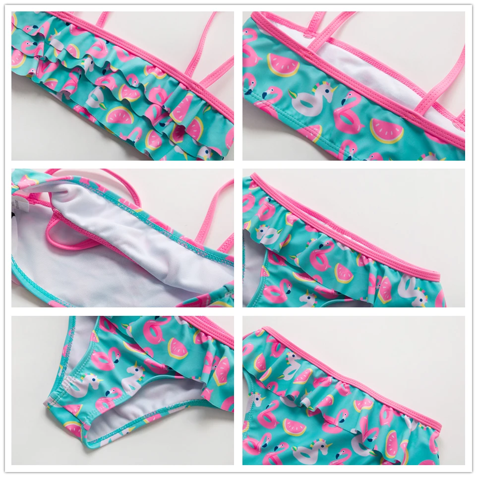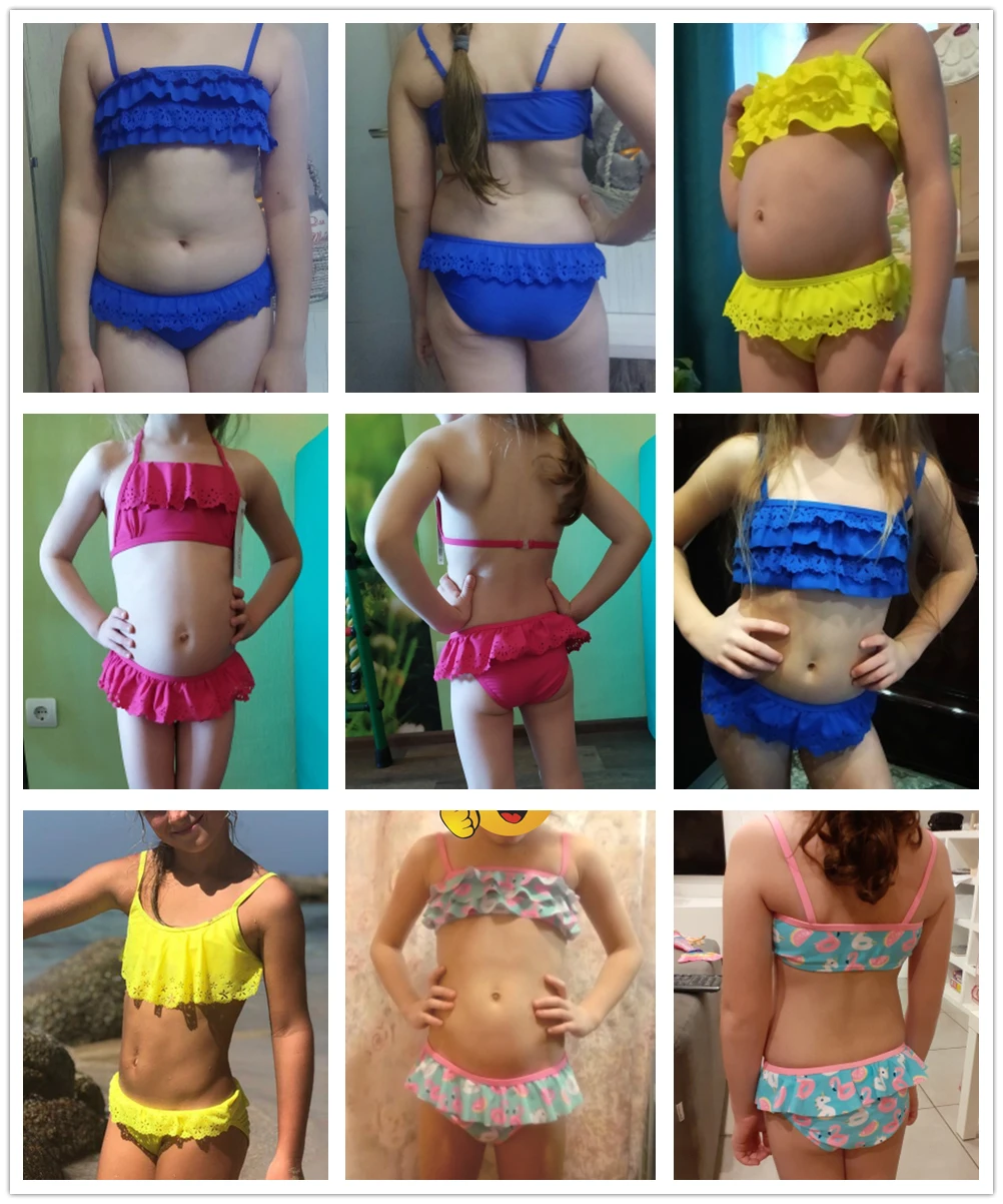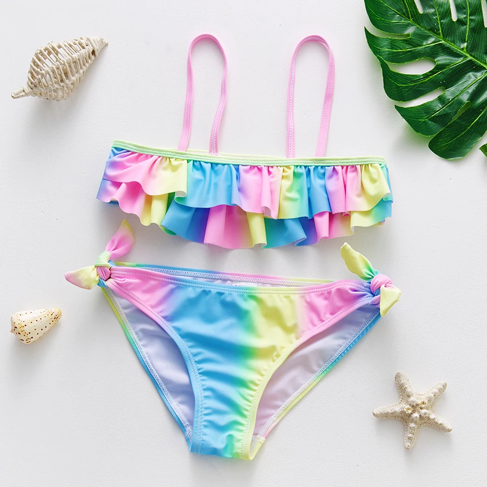Купальник для девочек-подростков, Раздельный купальник для девочек 3-14 лет, Детский комплект бикини с вырезами и рюшами, Beachwear-ST9031