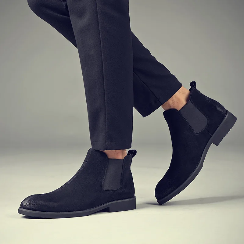 Мужские ботинки челси YIGER, коровья замша, без застежки, повседневные ботинки, полуботинки челси, осень 0368