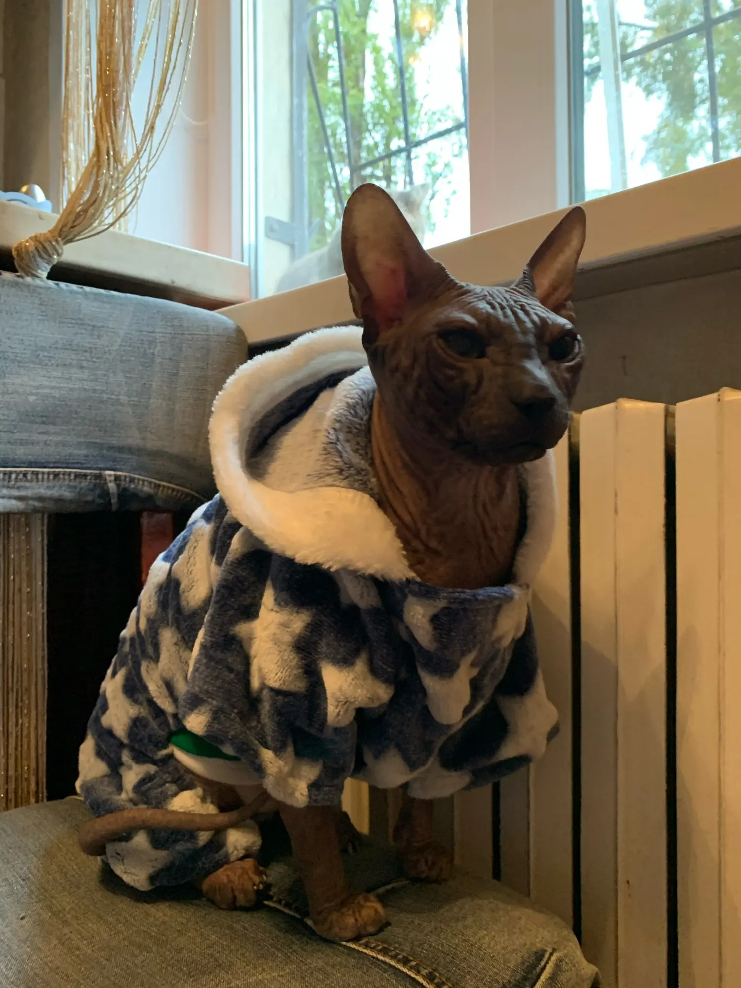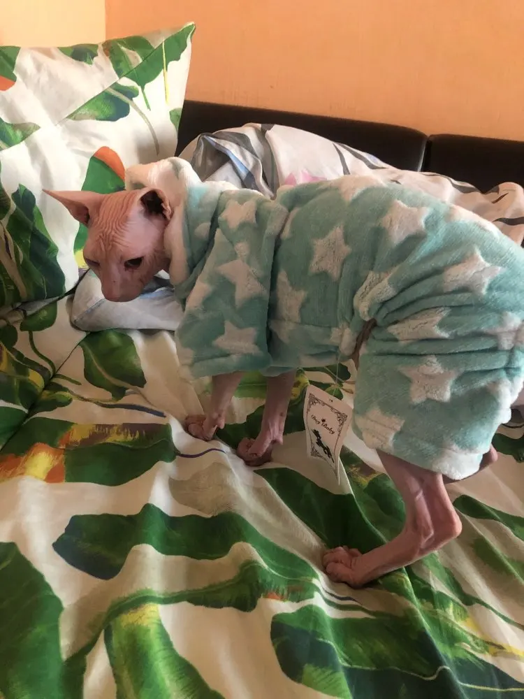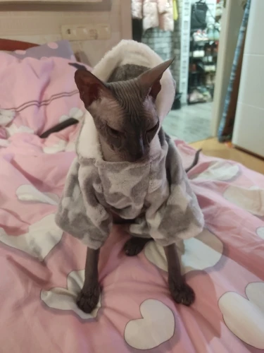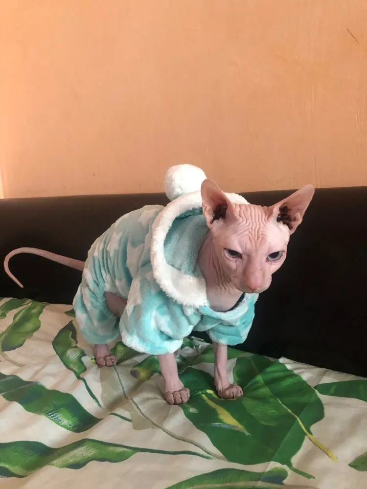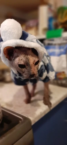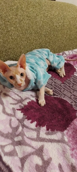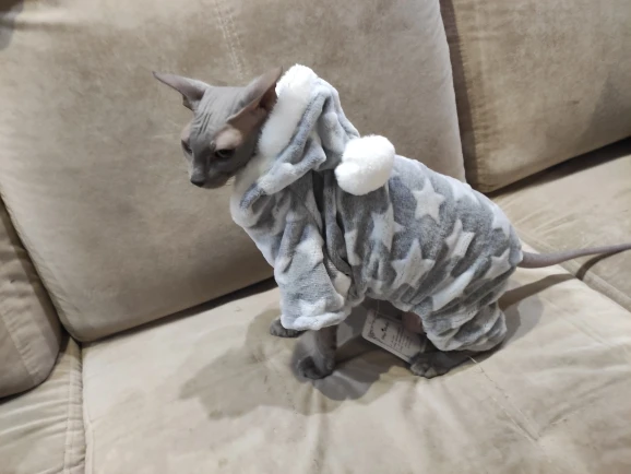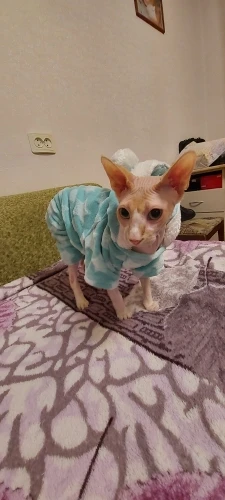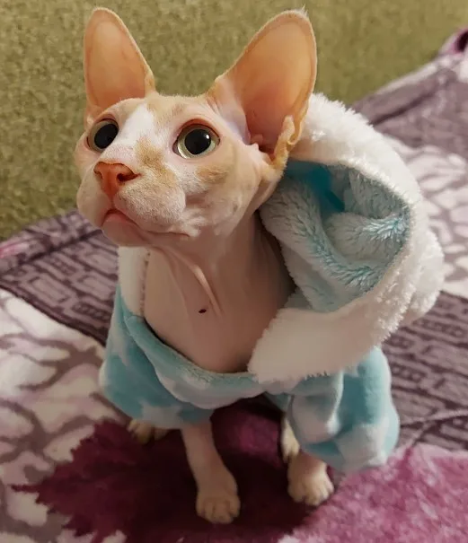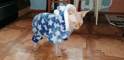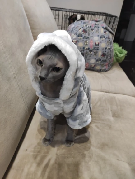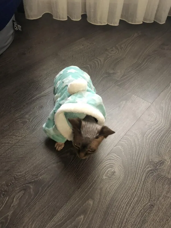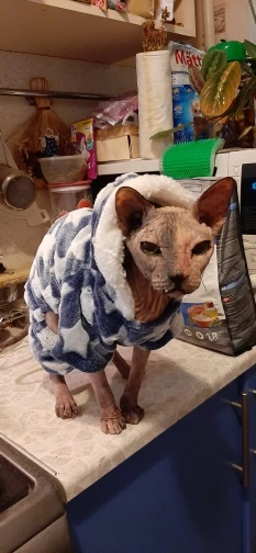 Мой 6-месячный Сфинкс Кот в восторге! Я выбрал размер L, даже если он немного велик, потому что он очень быстро растет, и я хочу использовать его некоторое время. Он очень мягкий и уютный, и каждый раз, когда я его одеваю, он засыпает из-за тепла, которое он чувствует. И дизайн такой крутой, так как у моей кошки голубые глаза. Баланс качества и цены впечатляющий. Я рекомендую этого продавца, и я буду покупать у них снова.