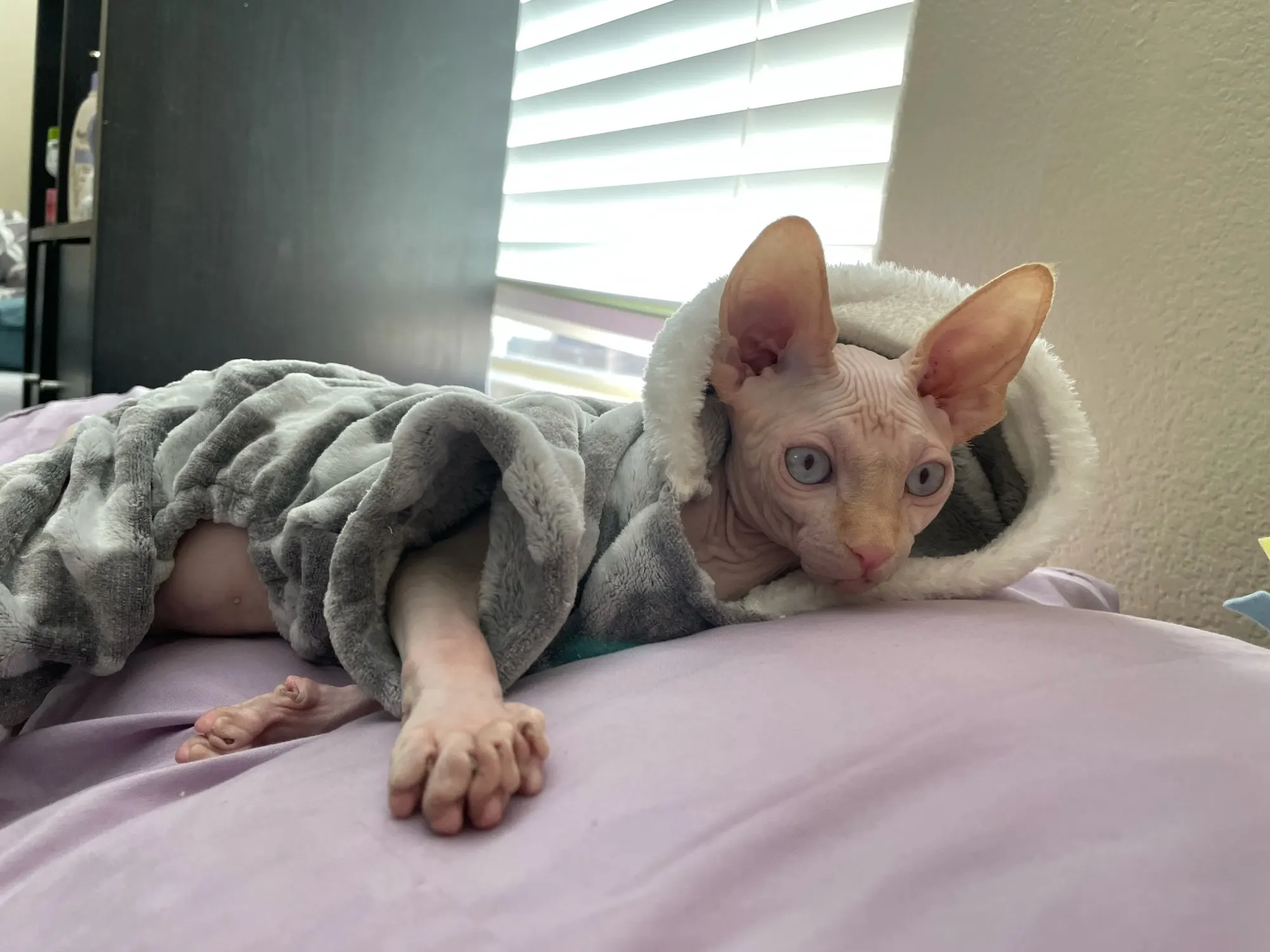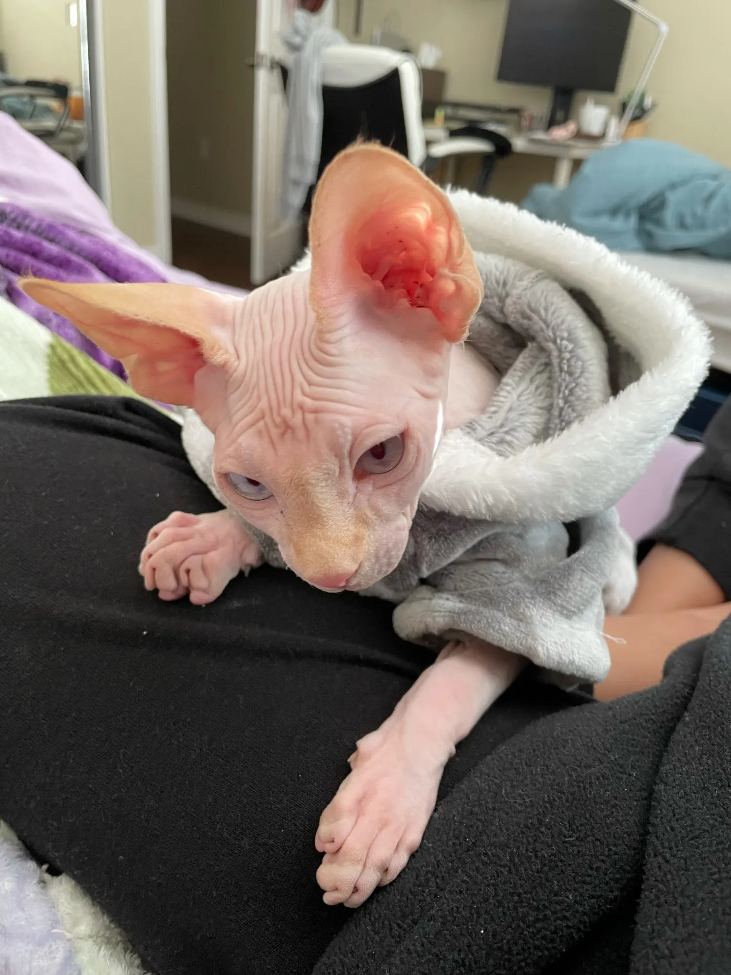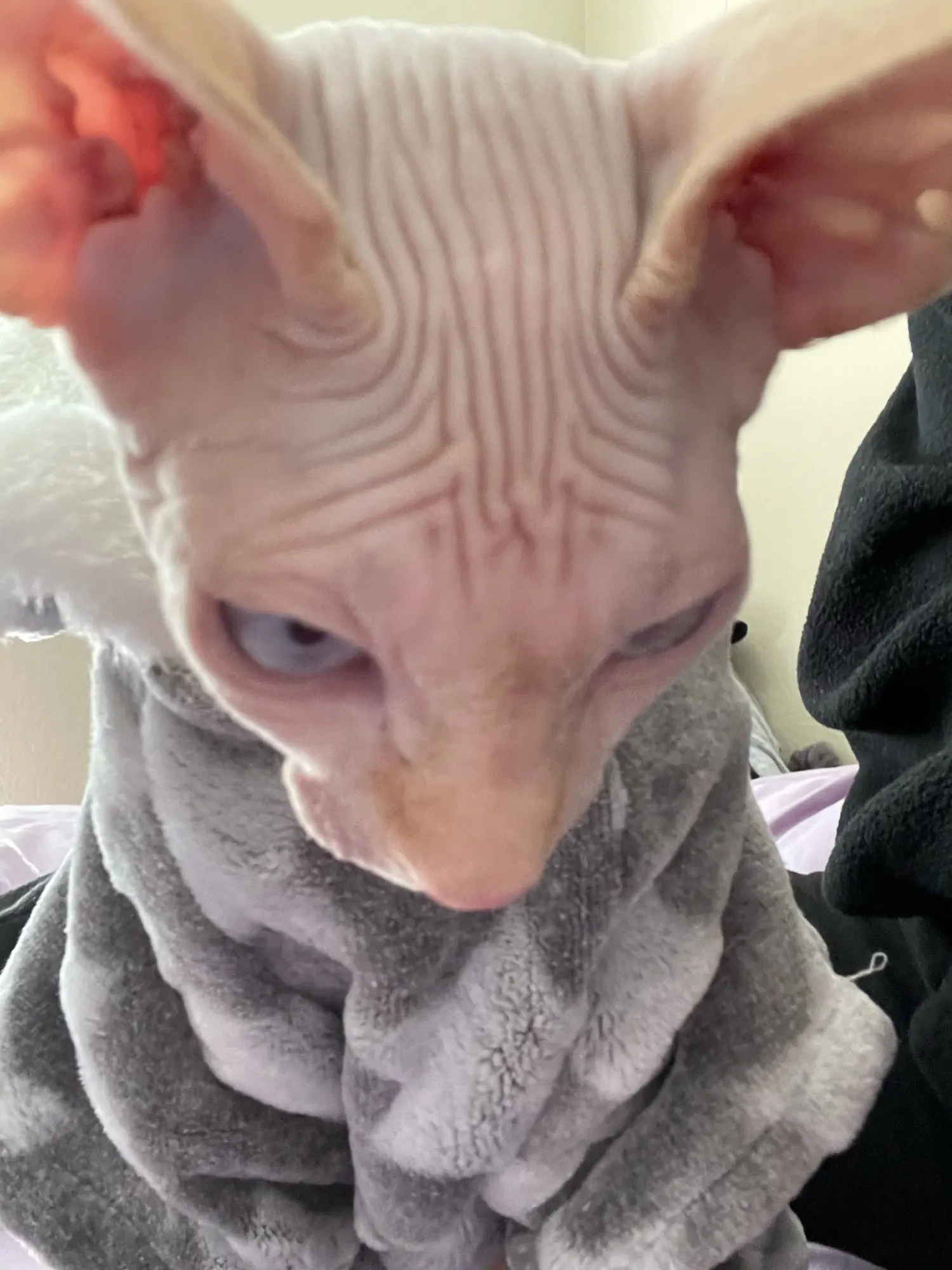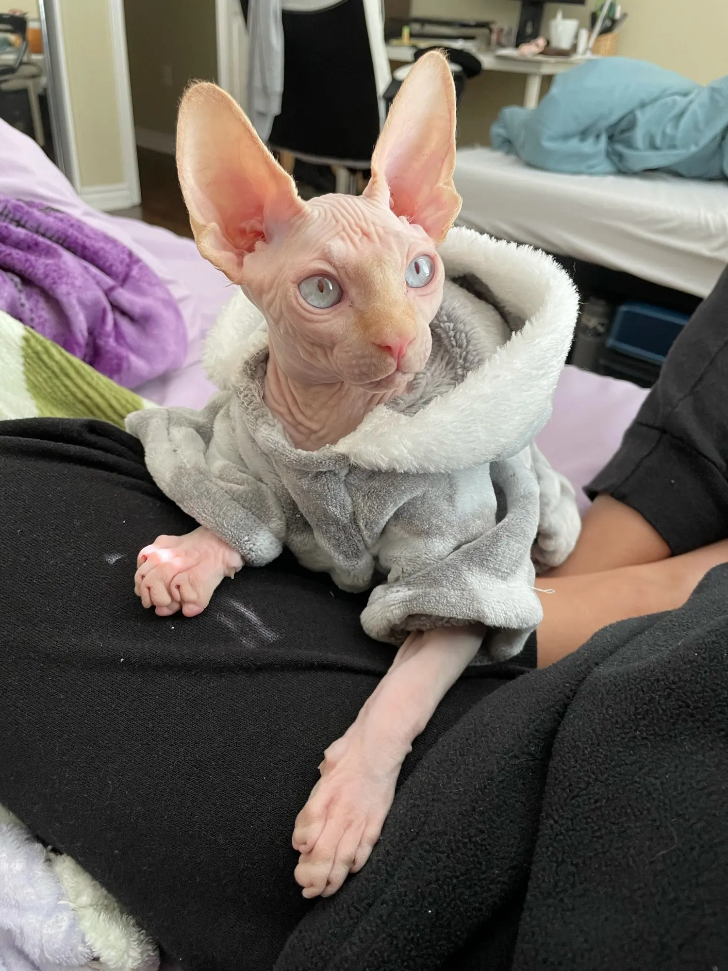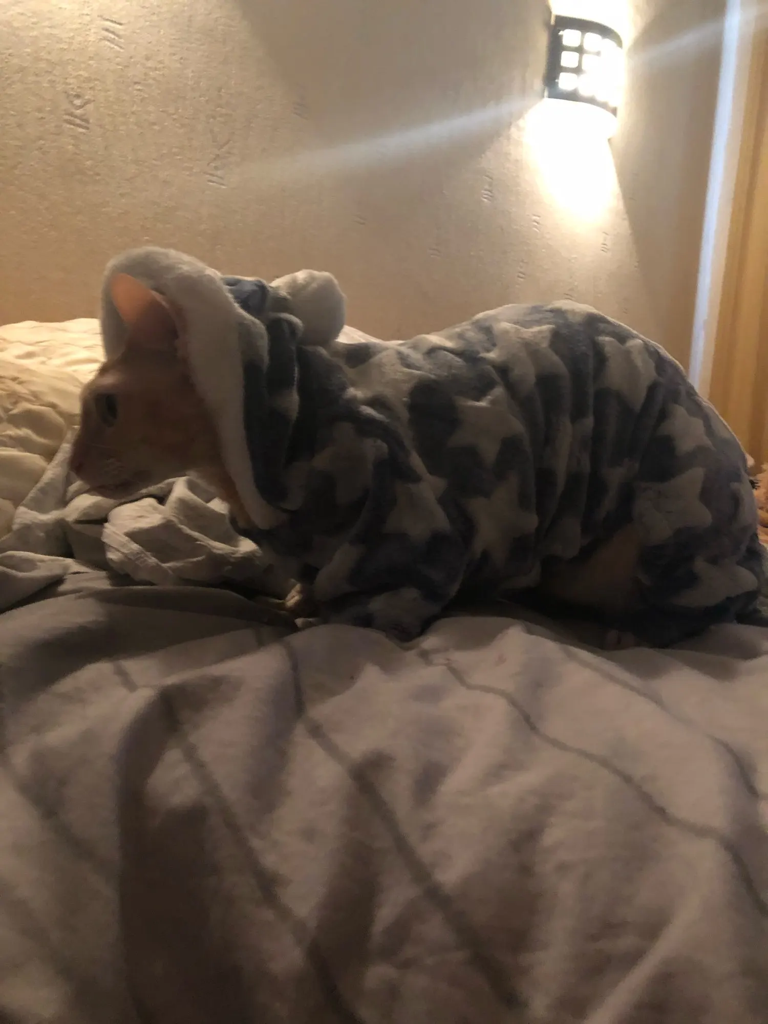 Мой 6-месячный Сфинкс Кот в восторге! Я выбрал размер L, даже если он немного велик, потому что он очень быстро растет, и я хочу использовать его некоторое время. Он очень мягкий и уютный, и каждый раз, когда я его одеваю, он засыпает из-за тепла, которое он чувствует. И дизайн такой крутой, так как у моей кошки голубые глаза. Баланс качества и цены впечатляющий. Я рекомендую этого продавца, и я буду покупать у них снова.
