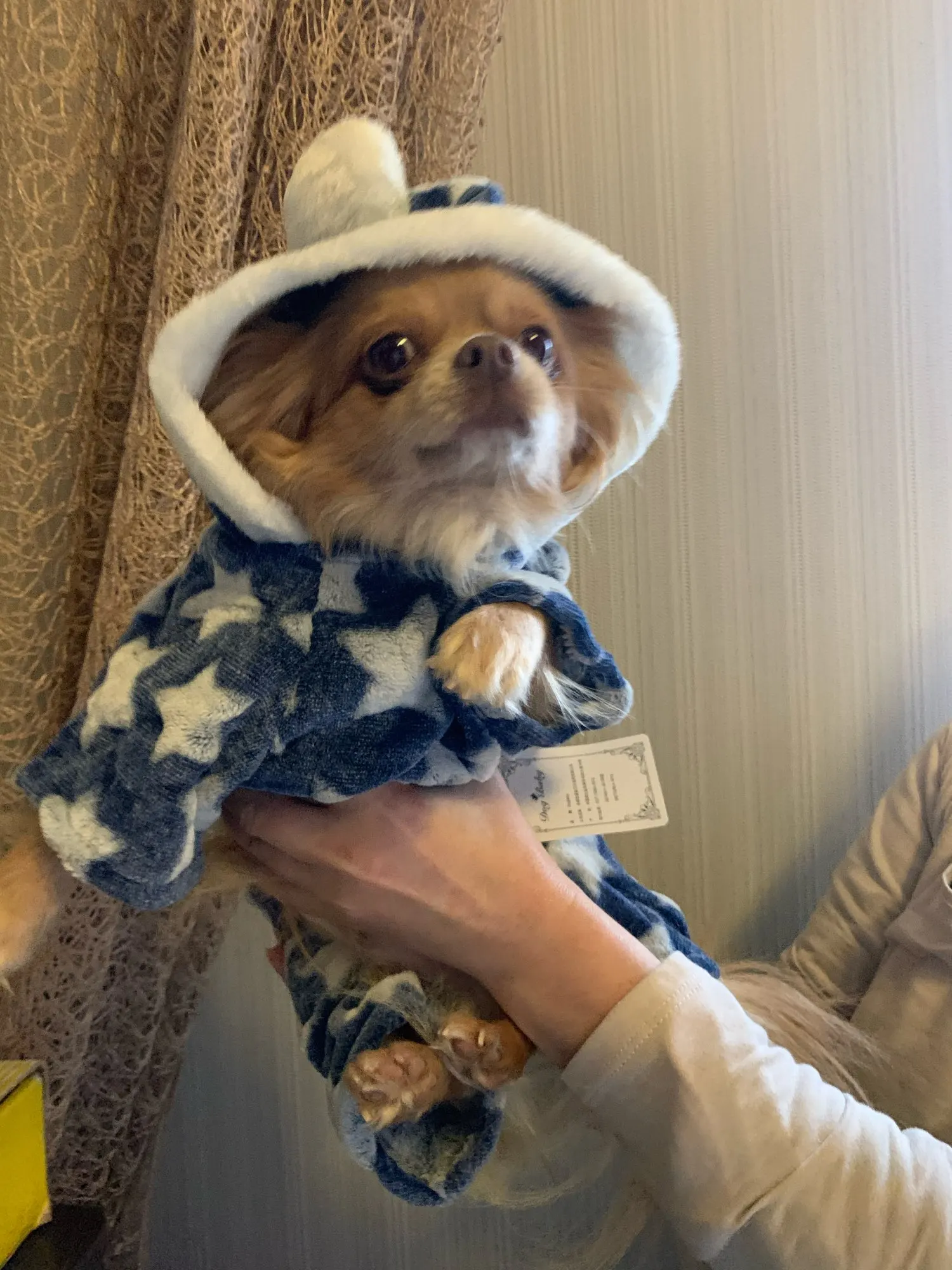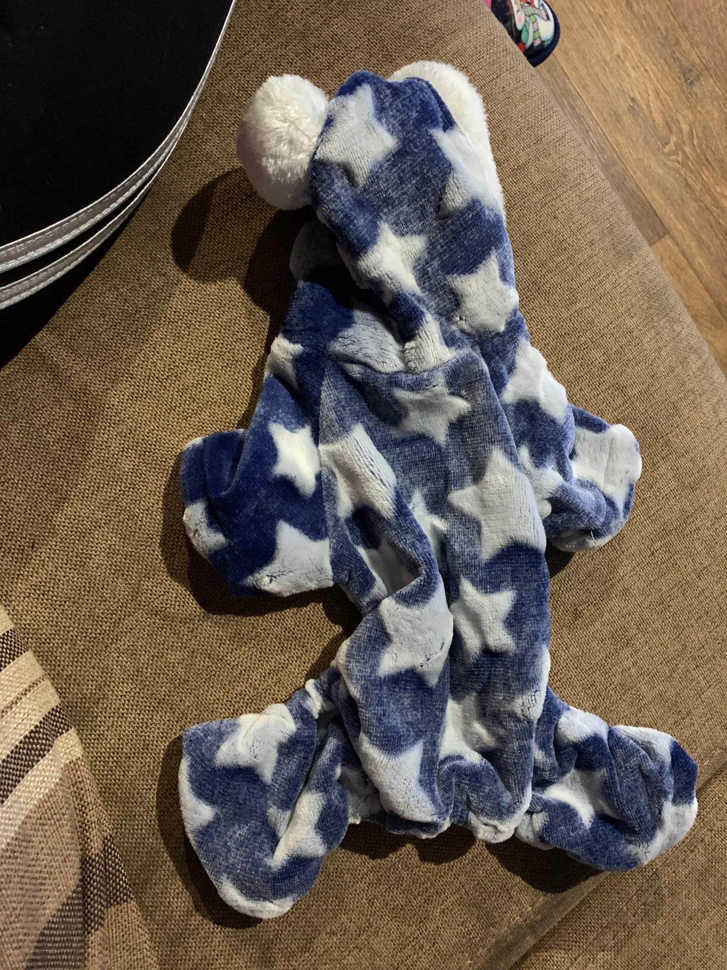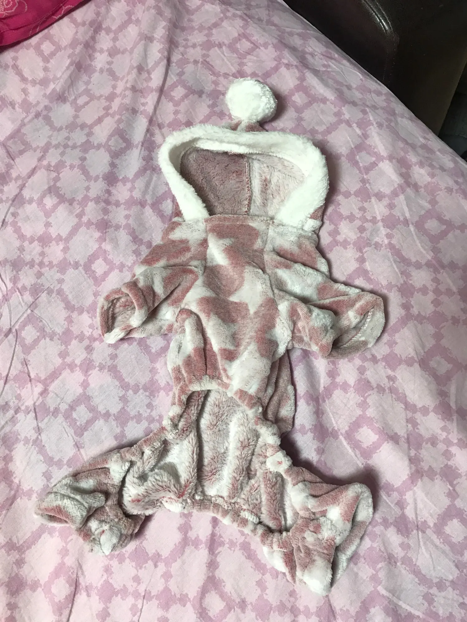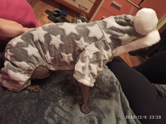 Получила посылку очень быстро, заказывала 11,11,в день распродаж, а пришла посылка 27,11.Очень хорошее качество, мягенький костюмчик. Он немного ещё великоват, но моя собачка ещё подрастёт, ей сейчас всего пять месяцев и я думаю, костюмчик будет ей в самый раз.Спасибо продавцу за качественный товар, я ставлю высокую оценку и рекомендую другим.
