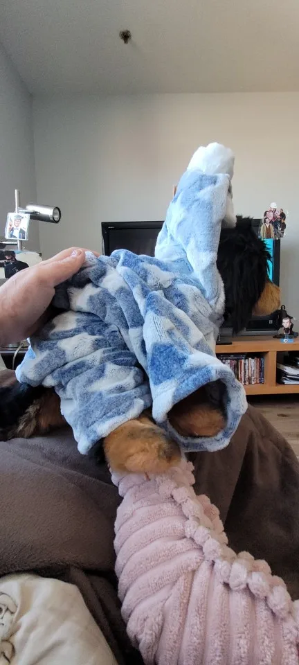 Omg наш мальчик любит его! Так приятно Только что заказал еще два цвета! Пришлось отрезать помпон, хотя и был слишком тяжелым для капюшона, и он держал прыгать вперед Мы получили XL, и он идеально подходит нашему мальчику 2yo Sphynx Доставка занимает некоторое время, но это не проблема. Милый и мягкий О нем может бегать только наш мальчик. Не останавливает чистку!