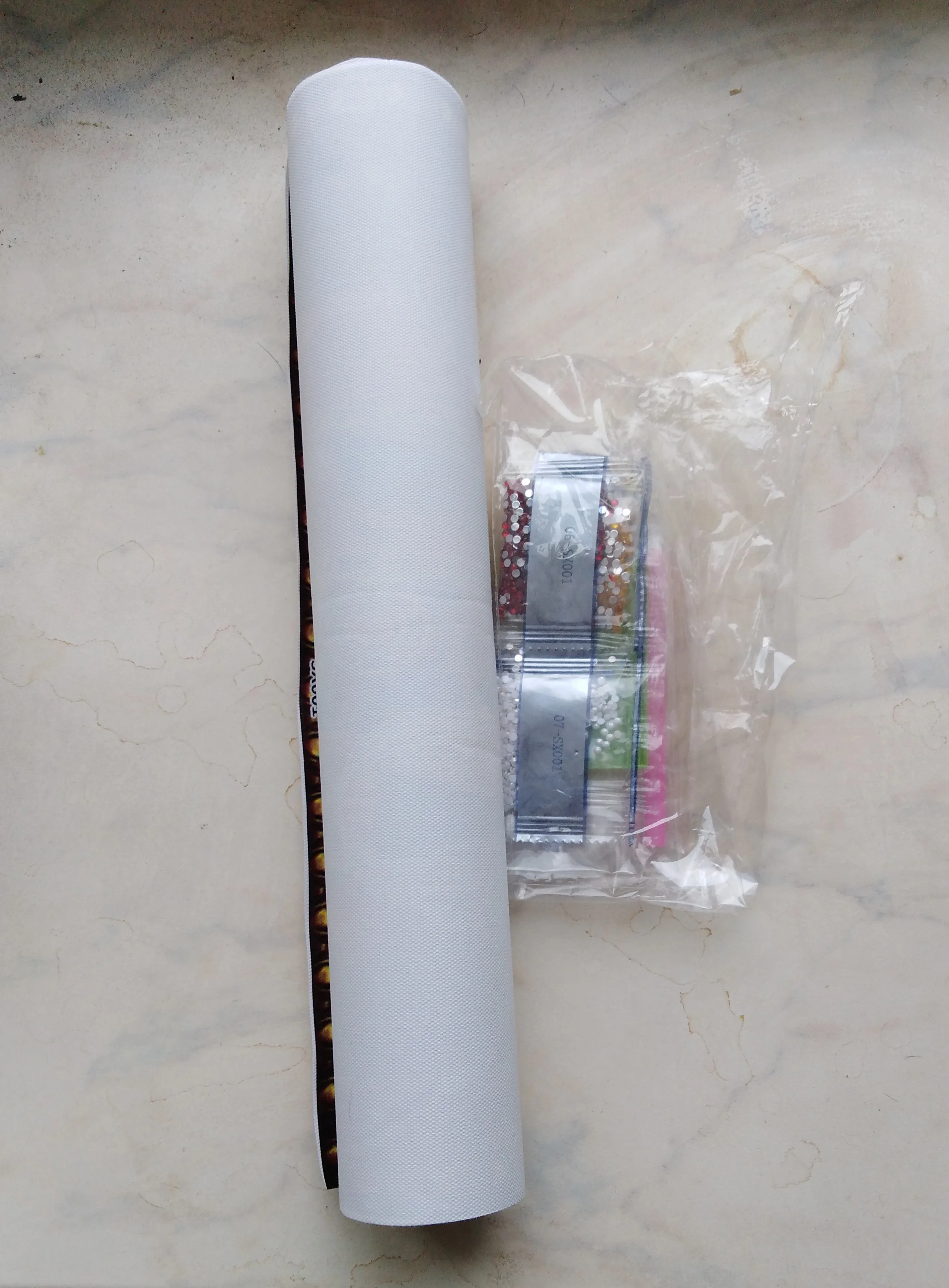 Быстрая доставка до Калуги за 18 дней, описание соответствует, картина на валике, но сильно закручена, заломов мало. Стразы яркие круглые, 7 видов, на первый взгляд должно хватить, выкладка не полная, размеры полотна картины 30х40, но ещё есть хороший припуск полотна. Спасибо продавцу за хороший товар. После выкладки дополню фото.