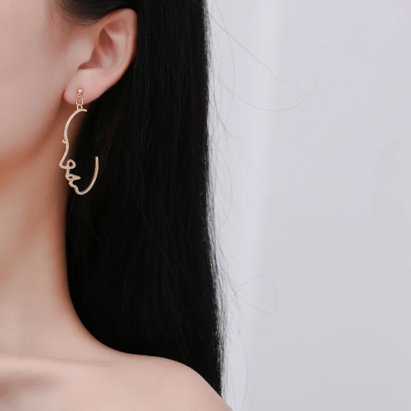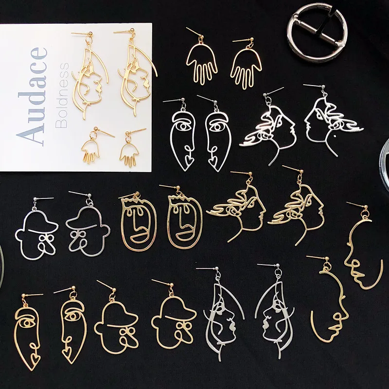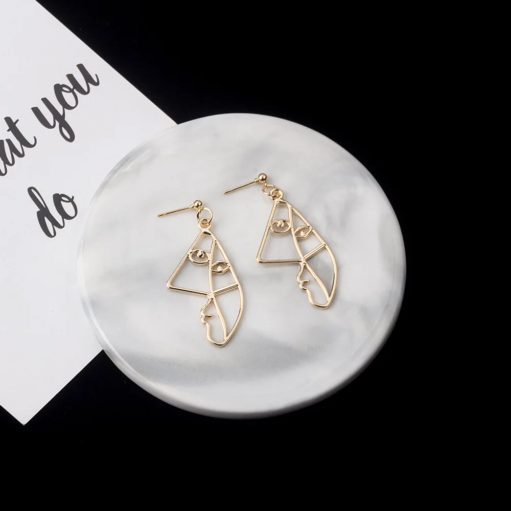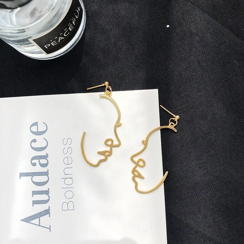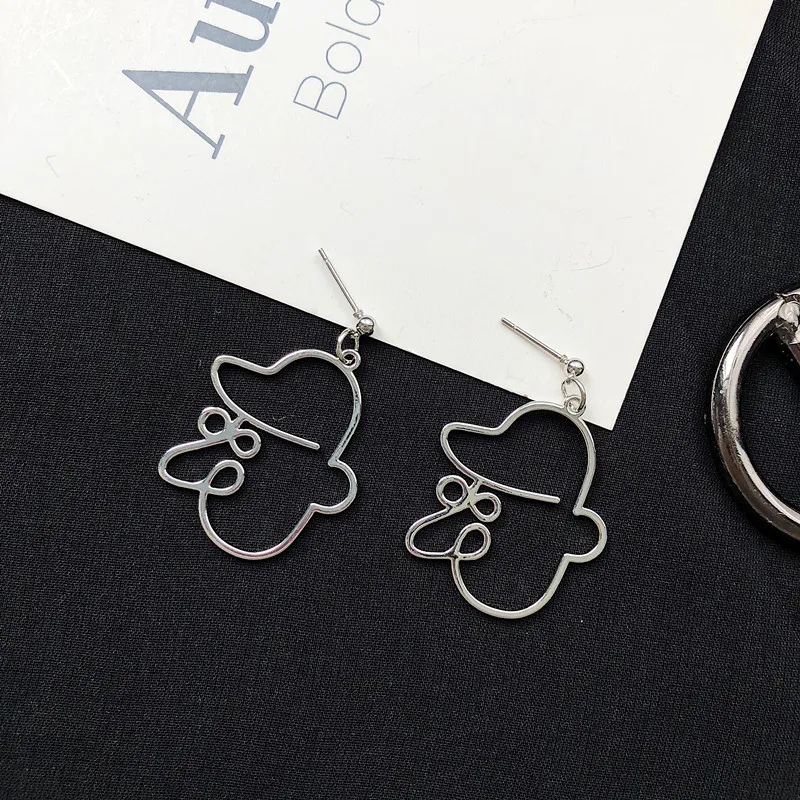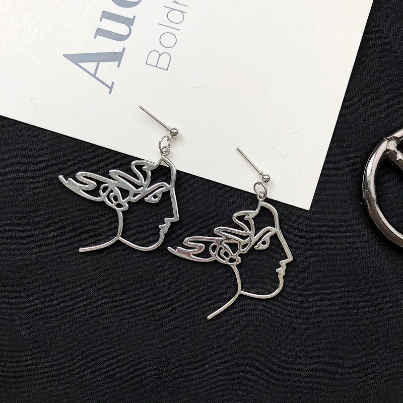 Серьги-капли в стиле панк с человеческим лицом для женщин, ретро абстрактные полые массивные Металлические модные серьги, ювелирные изделия