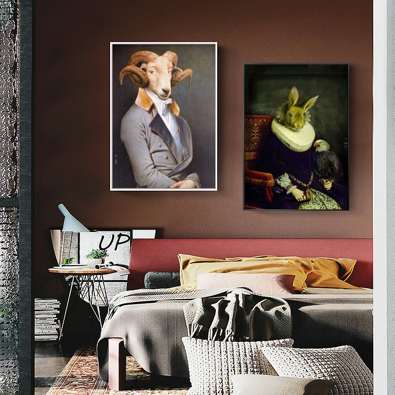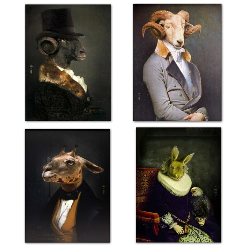 Картина маслом в стиле ретро джентльмена ностальгия животные настенная Картина на холсте плакаты и принты настенные картины для гостиной без рамки