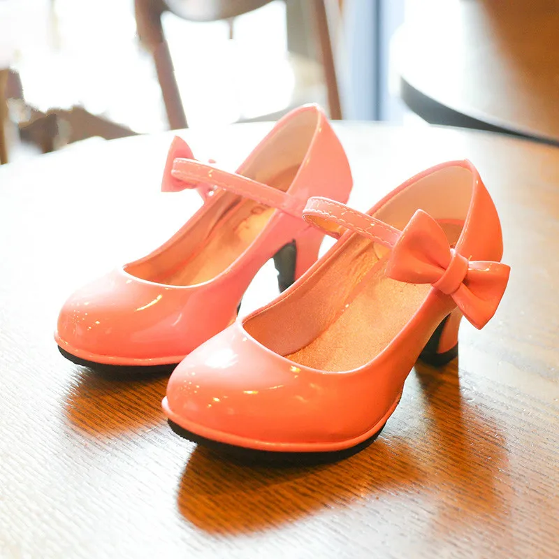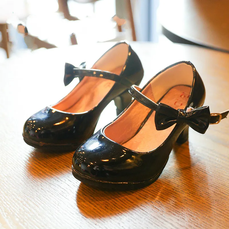 Кожаные туфли для девочек, Осенние босоножки с бантом, новинка 2019, детская обувь, милые босоножки принцессы на высоком каблуке для девочек, SZ107