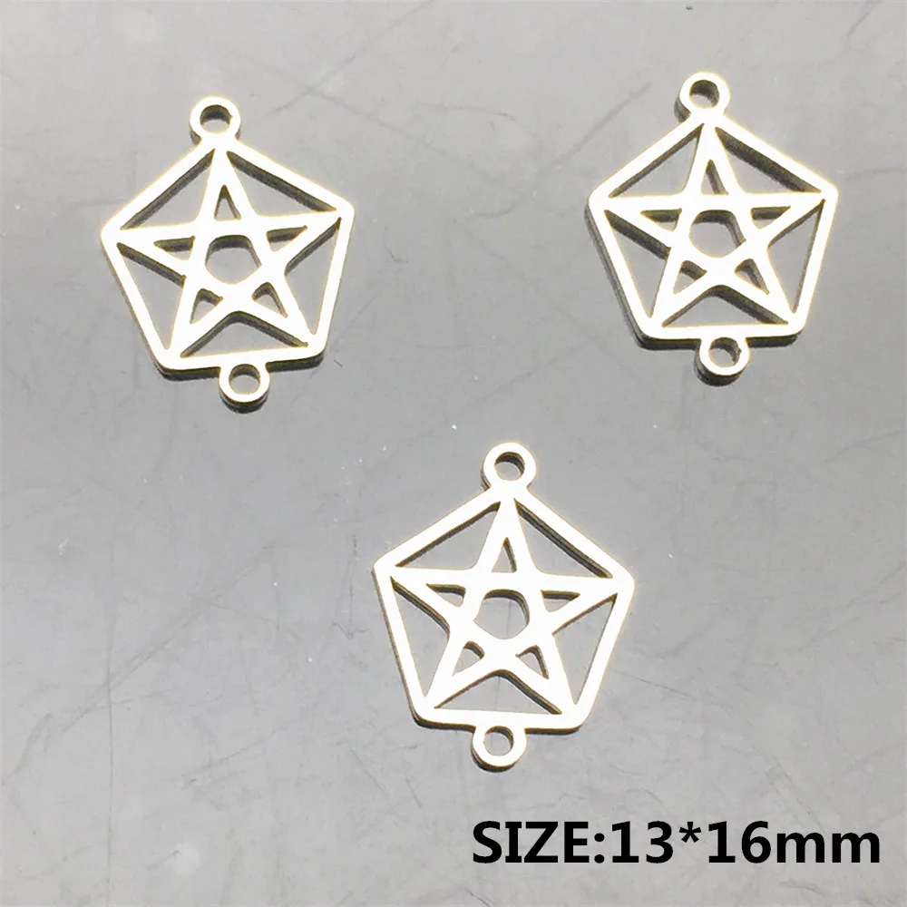 Коннекторы из нержавеющей стали Pentastar, 10 шт., ярко-серебристая подвеска с пентаграммой, коннектор для ожерелья, сделай сам, браслет, ювелирные изделия