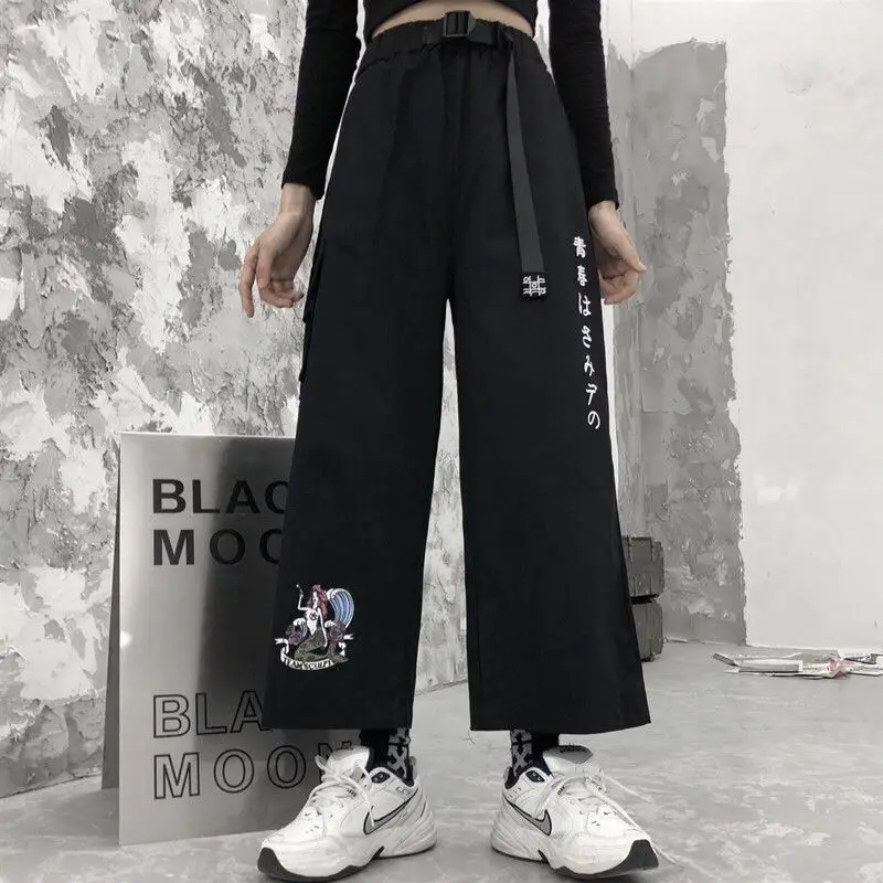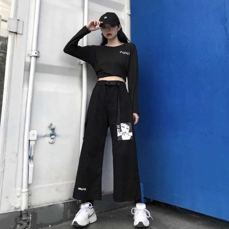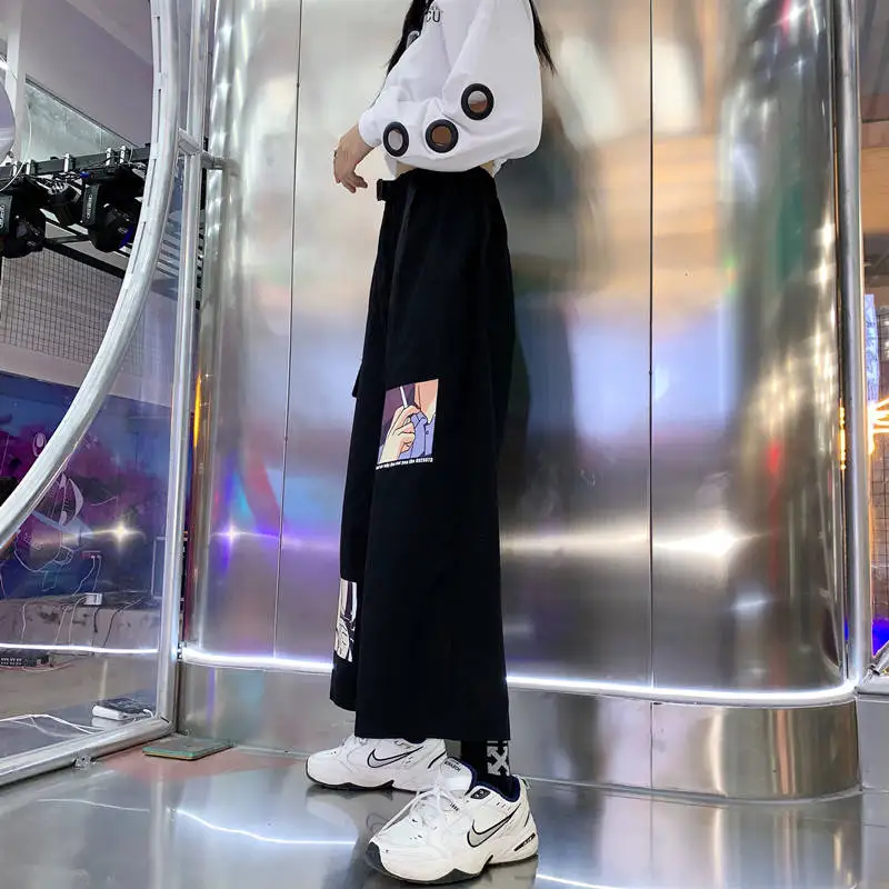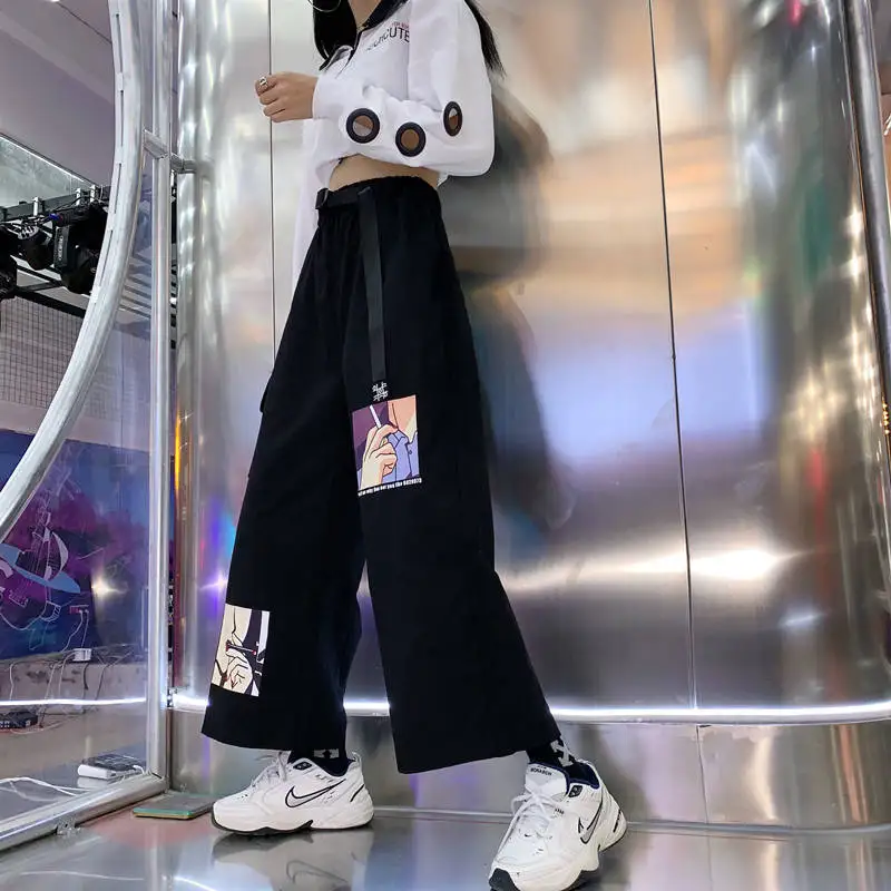NiceMix S-XXL Повседневная Летняя женская одежда ulzzang в Корейском стиле Harajuku Свободные футболки с буквенным принтом + широкие брюки с аниме принтом