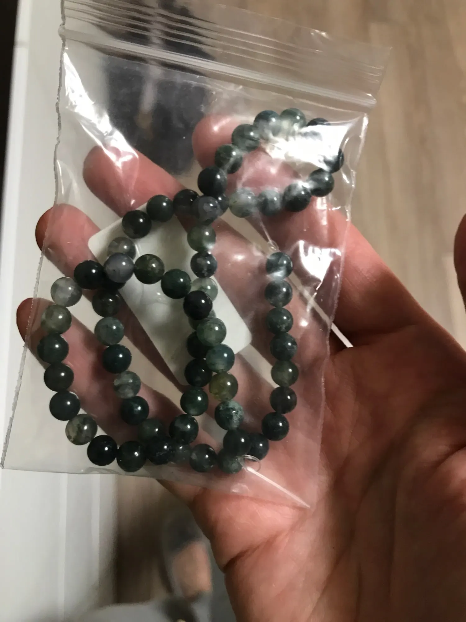 Бусины ровные, цвет зеленого мха, красивые,доставка 3 недели, продавцу большое спасибо.