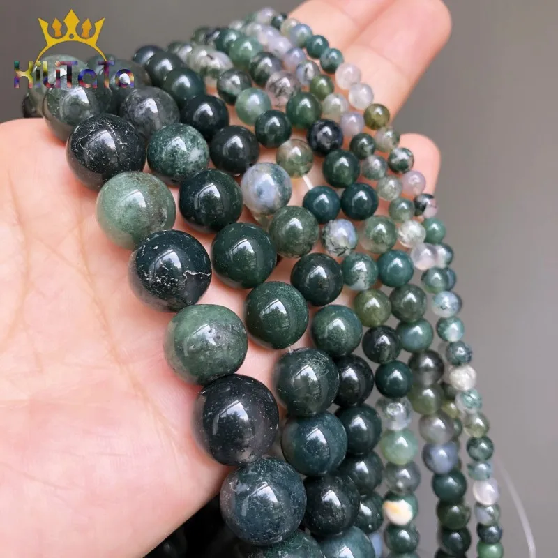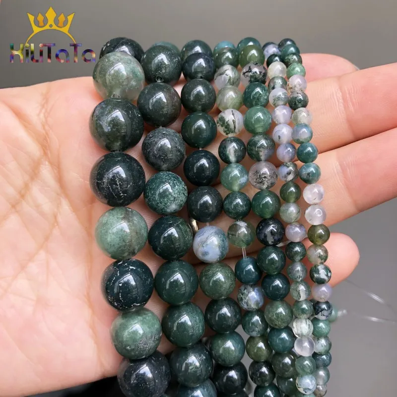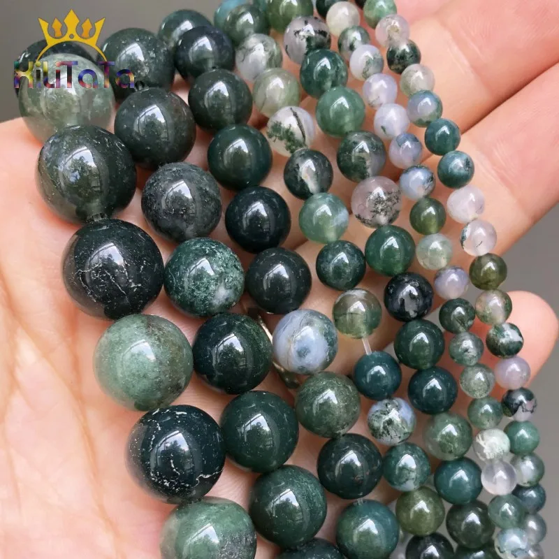 Бусины из натурального камня, моховые Агаты, круглые, незакрепленные, для самостоятельного изготовления ювелирных изделий, для браслета, аксессуары 15 дюймов, 4681012 мм
