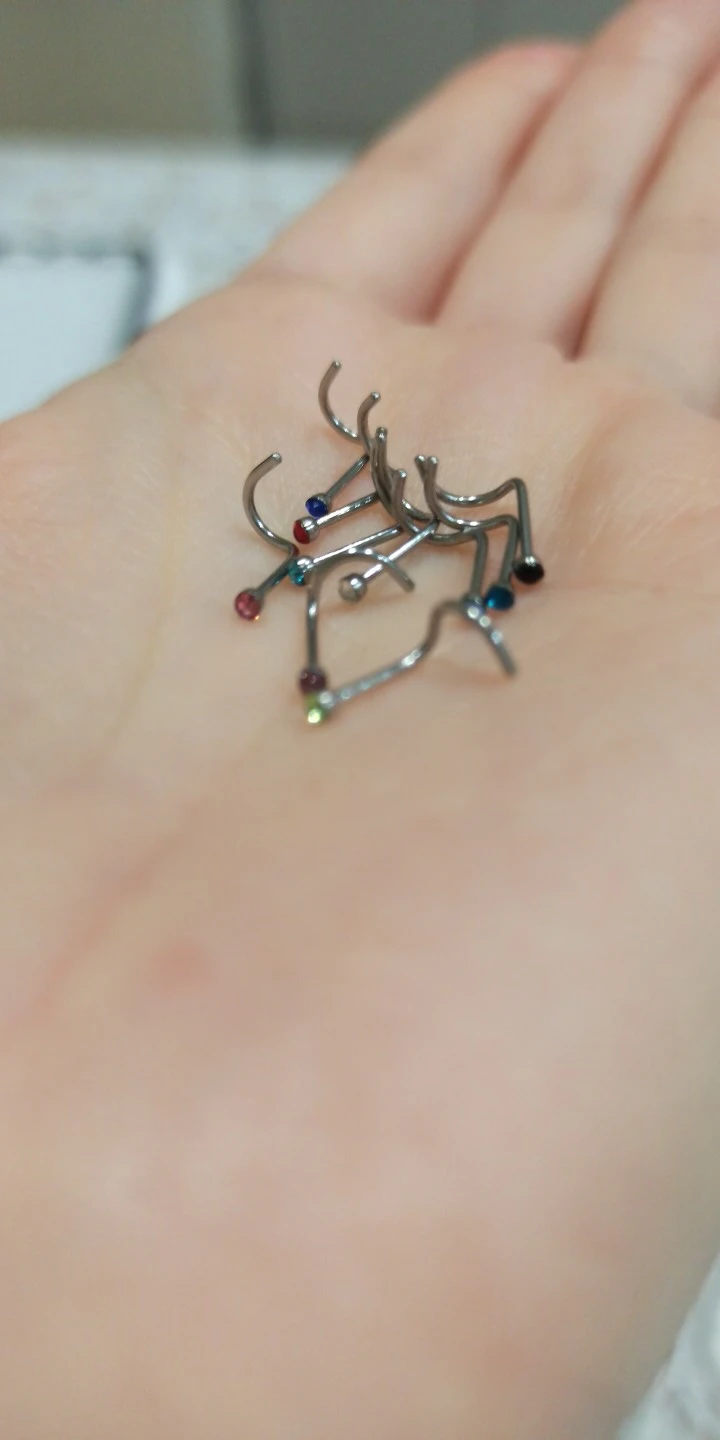 Пришли все 10 шт, красивые, качественные цвета как на картинке. Шел 2 недели в Москву. НО очень мелкие. Советовать не буду, но лучше пойти и купить золотую серьгу в нос. потому что эти серьги в носу как рыба в аквариуме. спасибо