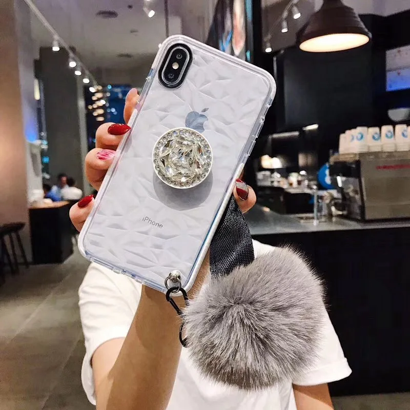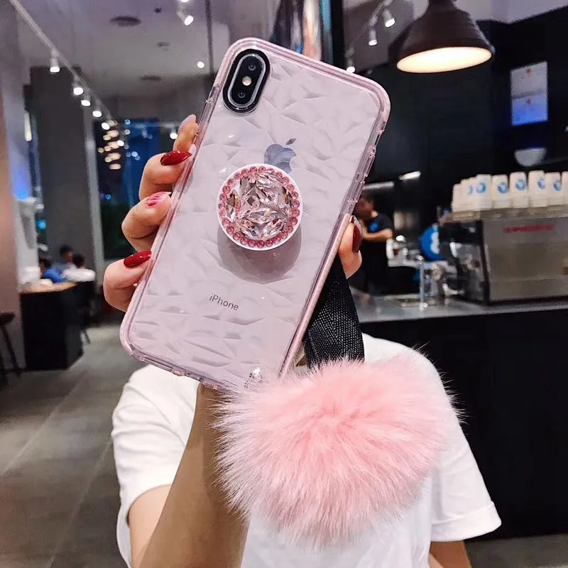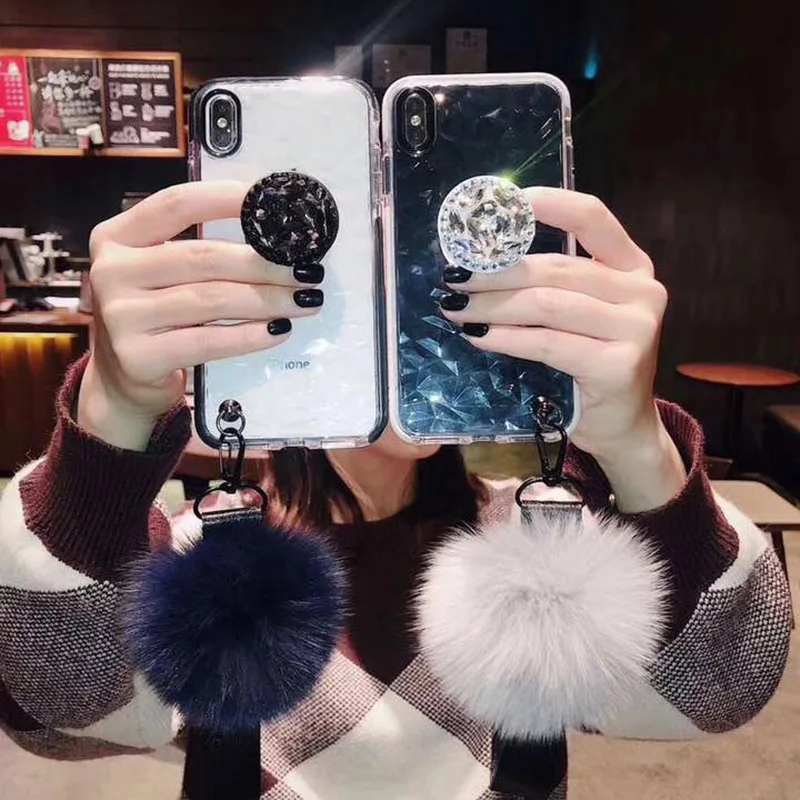 Чехол-подставка для телефона P30 Pro с фианитами + меховой шарик + ремешок для Huawei P10 P20 P30 Plus Lite Mate 20 Pro