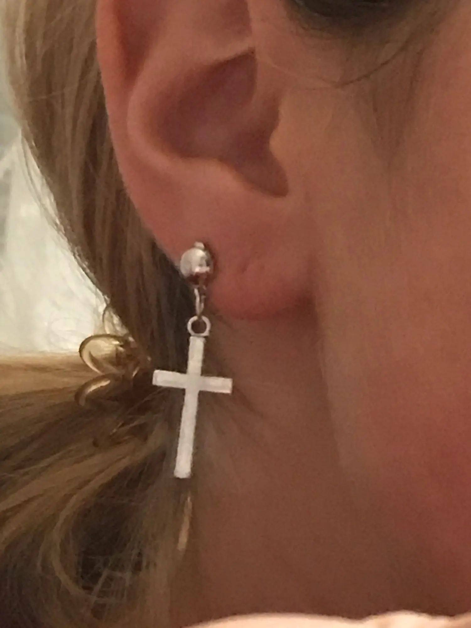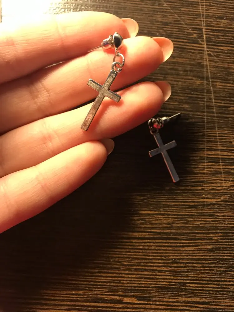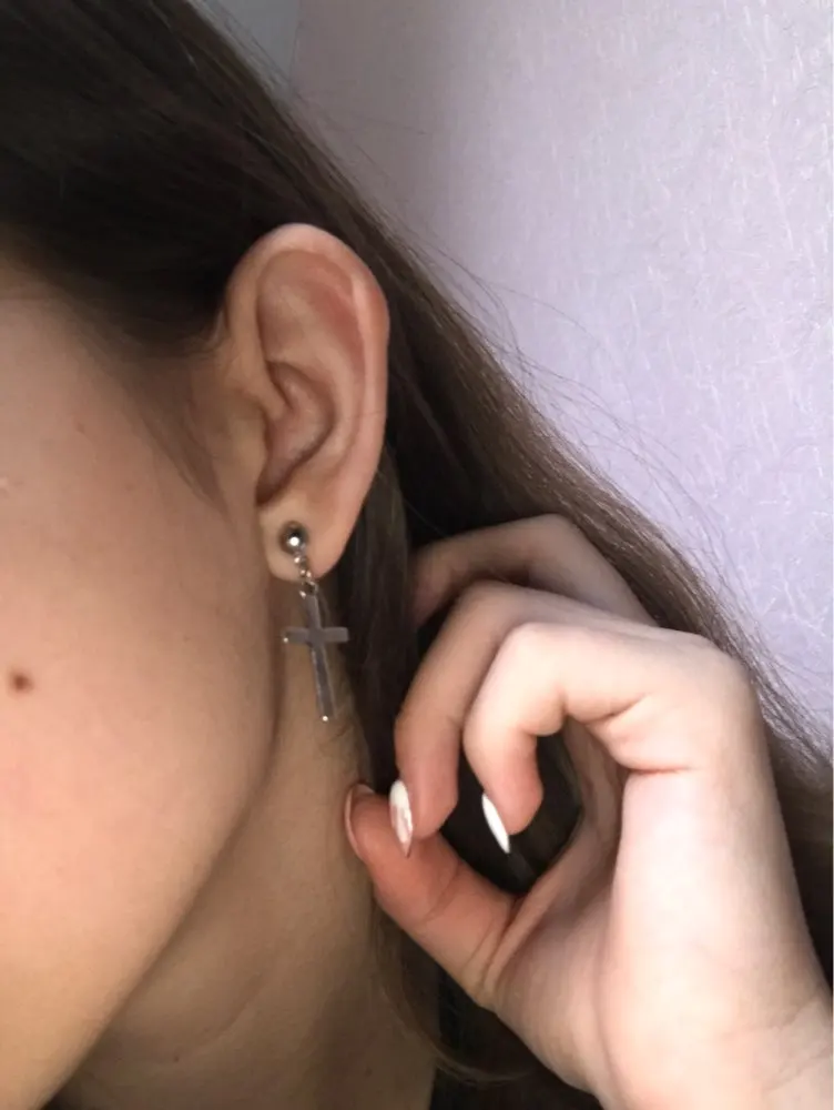 Хорошие сережки, но мне больше нравятся, чтобы крестик висел на кольце, а не на гвоздике