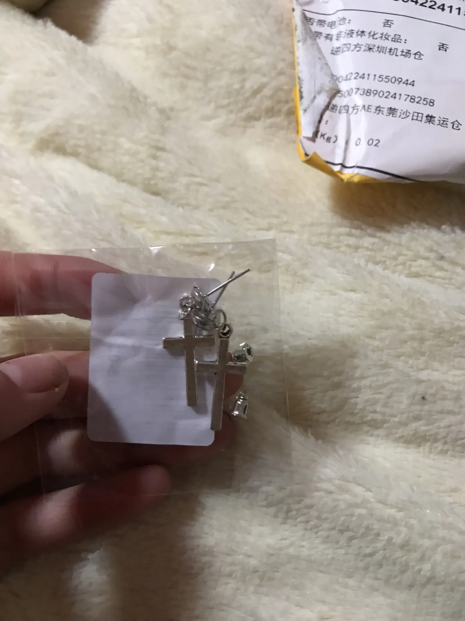 Доставка до спб быстрая. Продавец положил запасной замочек. Ну или это случайность, все равно спасибо. Один крестик идеальный, а вот второй весь в изъянах. И нет бы с одной стороны, но не в этот раз. Вовсе сторон какие то неровности. Буду заказывать второй раз. Они и выглядят на свои 40 рублей))))