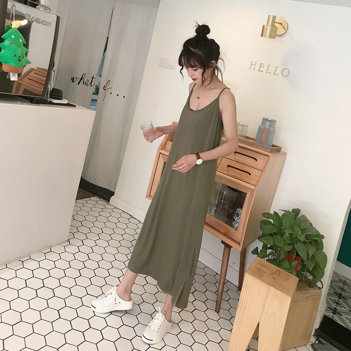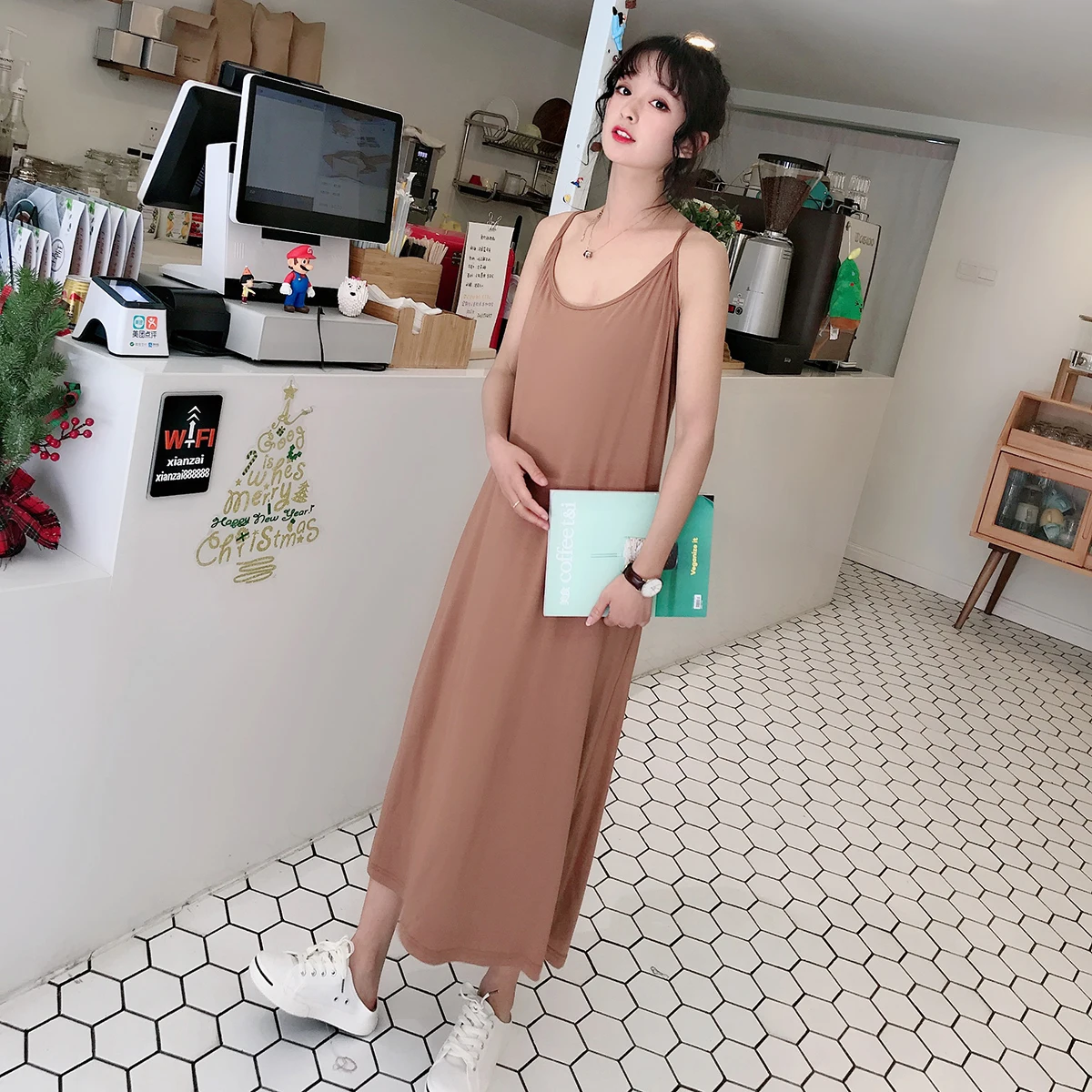 Ночная сорочка женская Модальная на бретелях-спагетти, пикантная Базовая длинная рубашка, домашняя одежда, летняя одежда для сна, свободная Ночная рубашка без рукавов