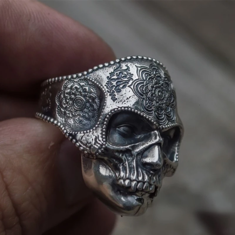 Мексиканская Мандала Цветы Сахар Череп кольцо готический серебряный цвет нержавеющая сталь тяжелые байкерские ювелирные изделия