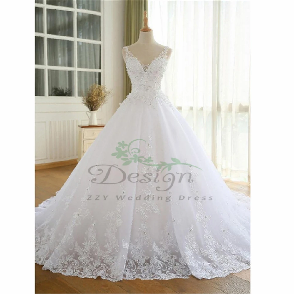 Изумительное белое платье на бретельках с v-образным вырезом и аппликацией из бисера Vestido De Novia, винтажное бальное платье с аппликацией на заказ, свадебные платья