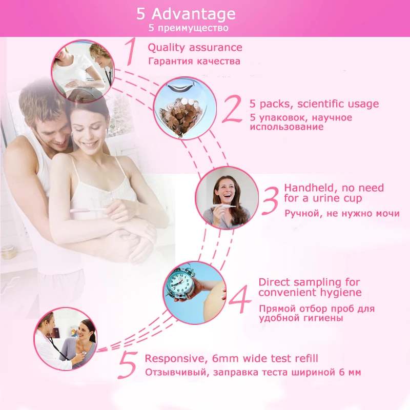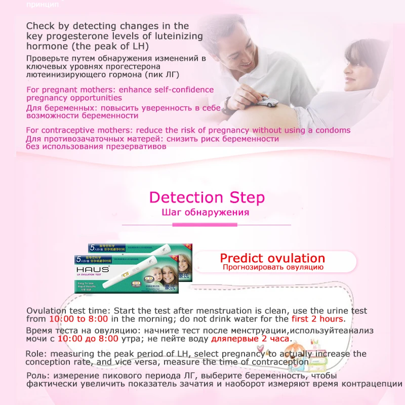 Тест-полоски на овуляцию HAUS LH, комплект из 5 тест-полосок на беременность, тест на мочу, тест-полоска LH, первый ответ, безопасный секс-период, контрацепцияОсобенности: