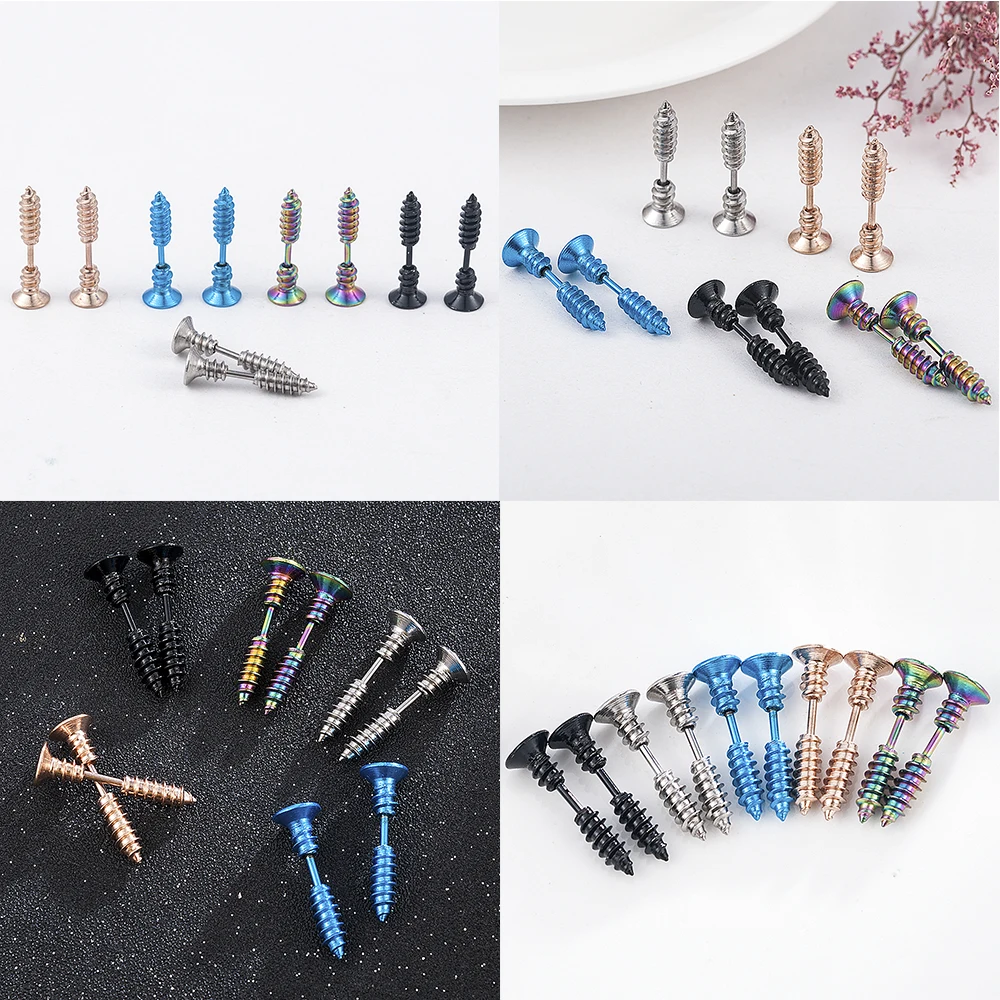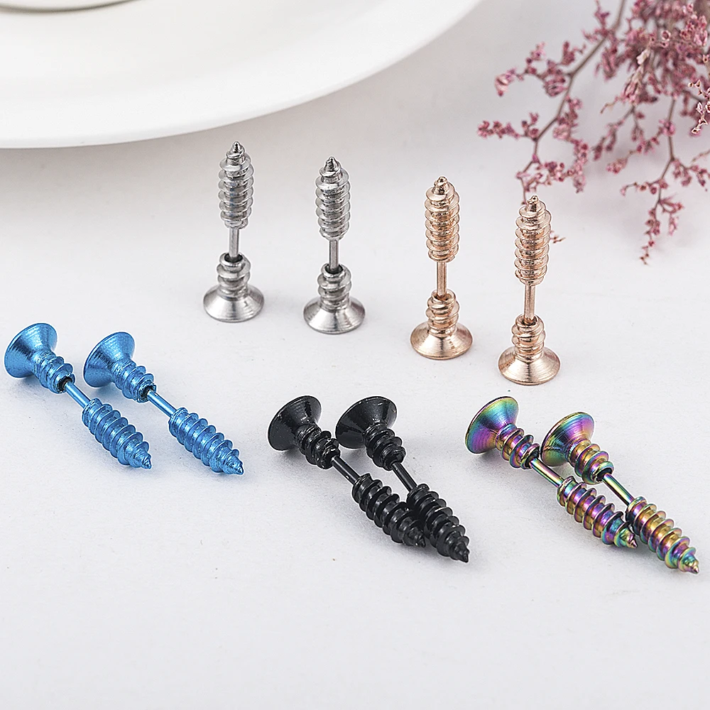 Женские серьги для пирсинга, в стиле панк, из нержавеющей стали, 5 цветов, мужские серьги-гвоздики, 1 пара