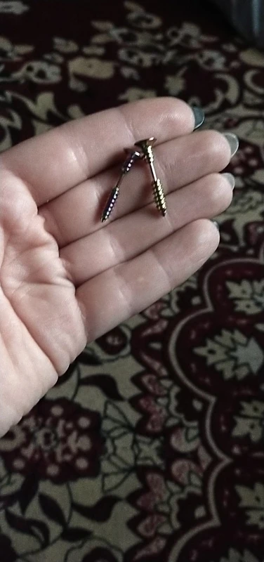 Шурупы пришли за месяц. в комплекте 2 шт. Это уже не первая пара, просто купила новый цвет. Резьба хорошая, не стирается. Не окисляется. Пока покрытие синее держится.Спать с ними не очень удобно,но дело привычки и приспособленности. Обожаю их)))