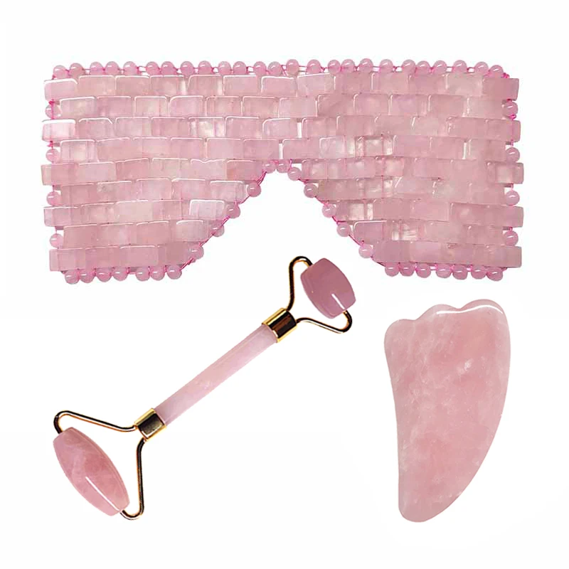 Натуральная маска для глаз из розового кварца, расслабляющий массажер, роликовый нефритовый ролик для лица, тонкий массажер для лица, доска для гуаши, скребок для гуаши