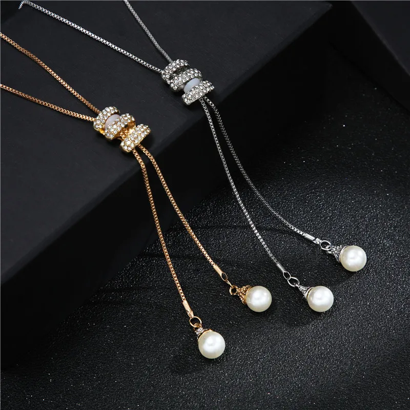 Ожерелье-цепочка с металлическими кисточками, стразы, кристаллы, жемчуг, длинная цепочка для свитера, вечеринки, 2020