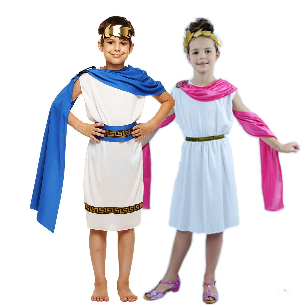 Детская греческой богини Косплэй в римском стиле; костюмы принцессы; костюм арабского принца Цезарь нарядное платье Вечерние Хэллоуин вечерние Афины, спортивные костюмы для мальчиков и для девочек