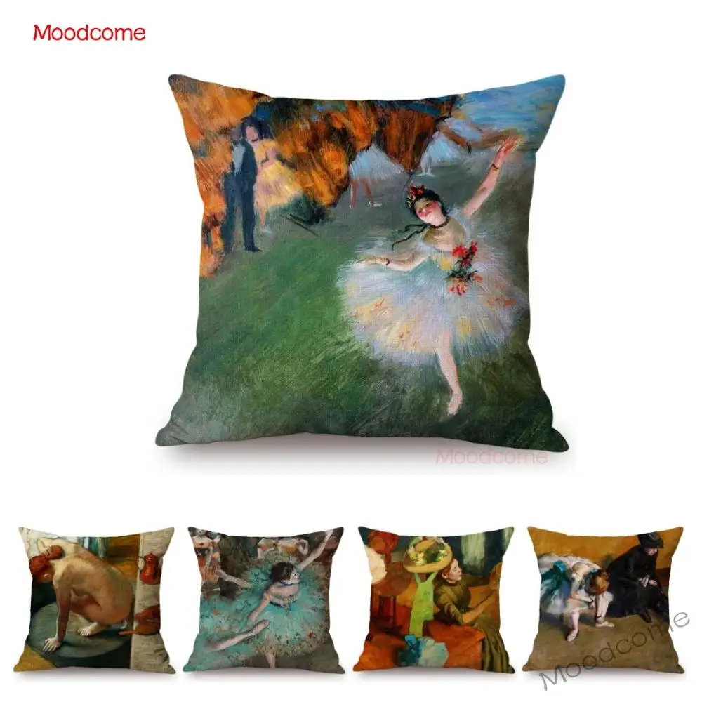 Льняной чехол для диванной подушки, с изображением художника импрессионизма Эдгара Дега, картины маслом, коллекции, балерины, танцора