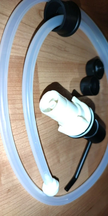 товар пришел оперативно. Все сделано идеально. На шланге есть обратный клапан (чтобы жидкость между использованием не вытекала обратно в ёмкость.