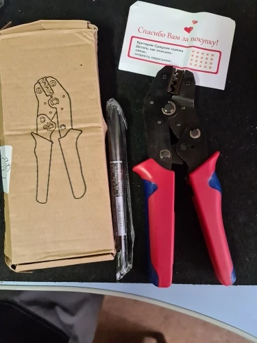 Заказывал этот скримпер примерно неделю назад, сегодня пошёл на почту что бы получить другой заказ и вдруг мне выдали 4 разных посылки в числе которых была и эта со скримпером. Очень быстрая доставка. Продавцу огромное спасибо. Уже опробовал в деле на автомобильных клеммах, опрессовывает отлично на разных проводах, но придётся докупать дополнительные сменные губки.