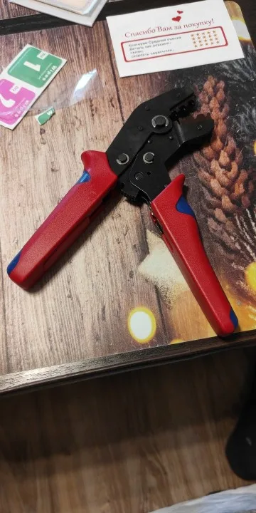обжимка вещь хорошая и не заменимая в хозяйстве. обжимает как надо, брал только пол наконечники, губки докупить можно отдельно. правда пришли не затянутые, пришлось до крутить. растроила ручка, дешевый и жесткий пластик. в руке вроде сидят, как поведет себя дальше рукоять не понятно, скинул звезду. хотелось бы прорезиненные вставки. доставка ускоренная