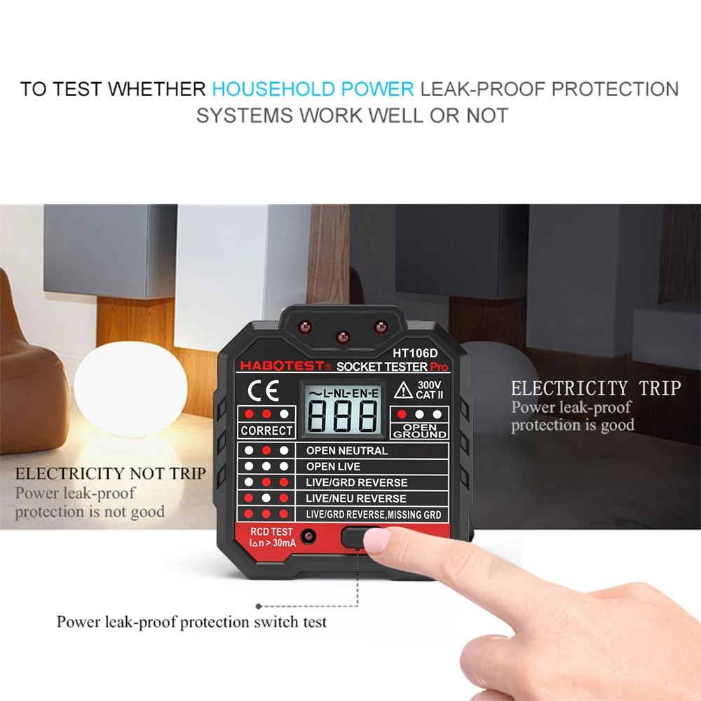 Нужно проверить проводку дома и проверить полярность подключения розетки? Нужно проверить утечку? Попробуйте наш HABOTEST тестер гнезда. Это профессиональный тестер гнезд, который быстро определяет, является ли соединение провода гнезда правильным или нет. С функцией тестирования RCD, это более практично и безопасно.Тип 1