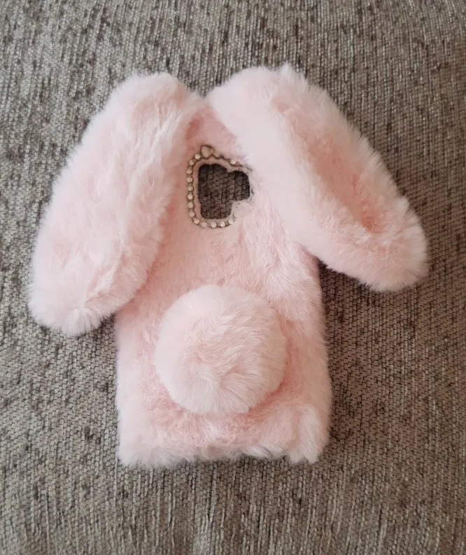 Features3D Rabbit Ears Furry fluffy Fur Plush Warm Cover Case